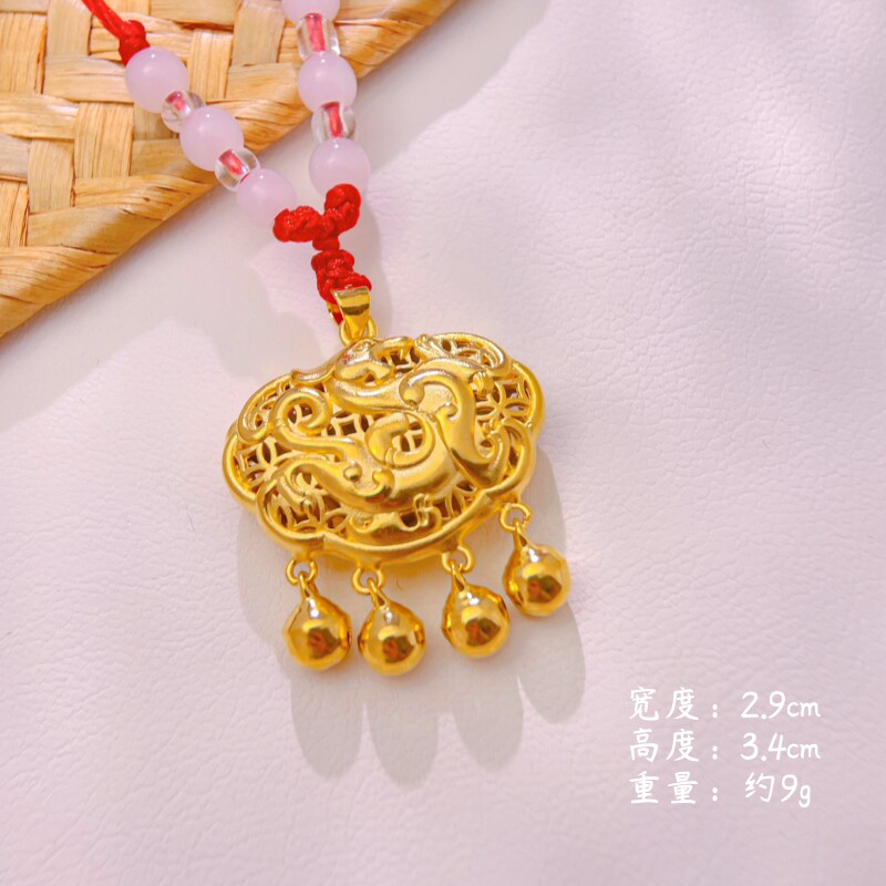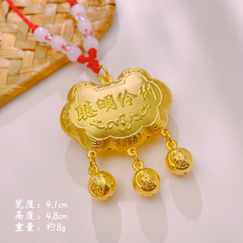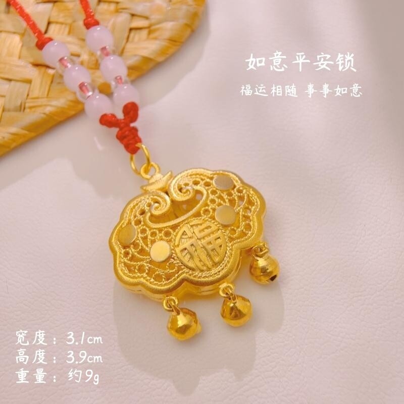 新品镀金沙金镀黄金项圈镂空福字金色锁宝宝项圈聪明伶俐满月项链
