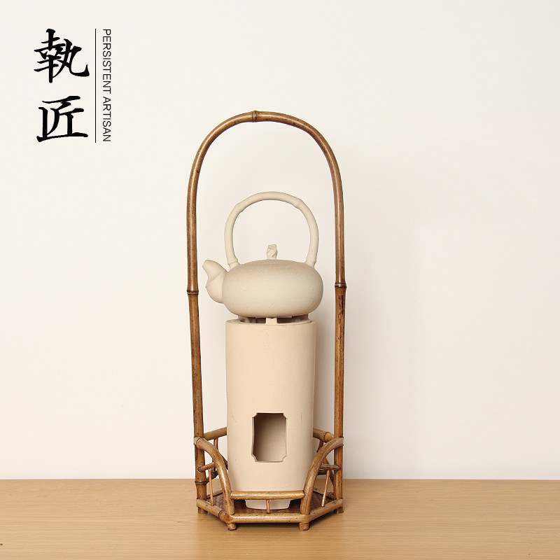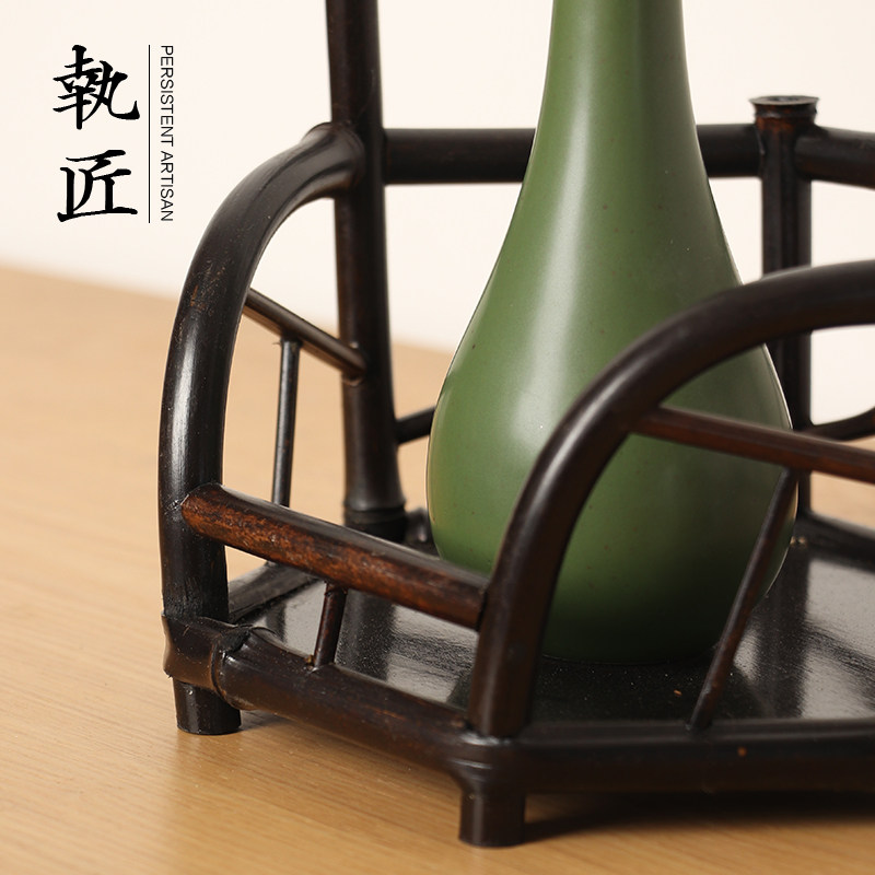 中式茶室装饰摆件手工竹制茶台玄关桌面饰品花瓶插花陶瓷瓶凉炉架
