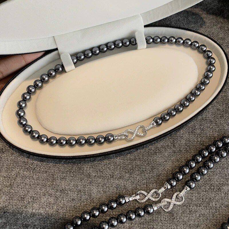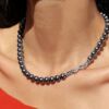 真多麻颈链灰色配饰毛衣黑项饰女大溪地珍珠项链锁骨高端大气