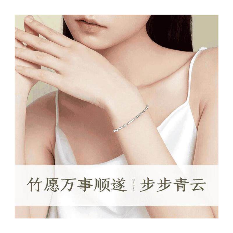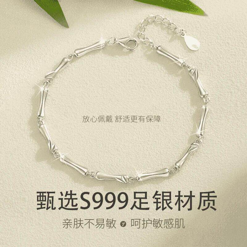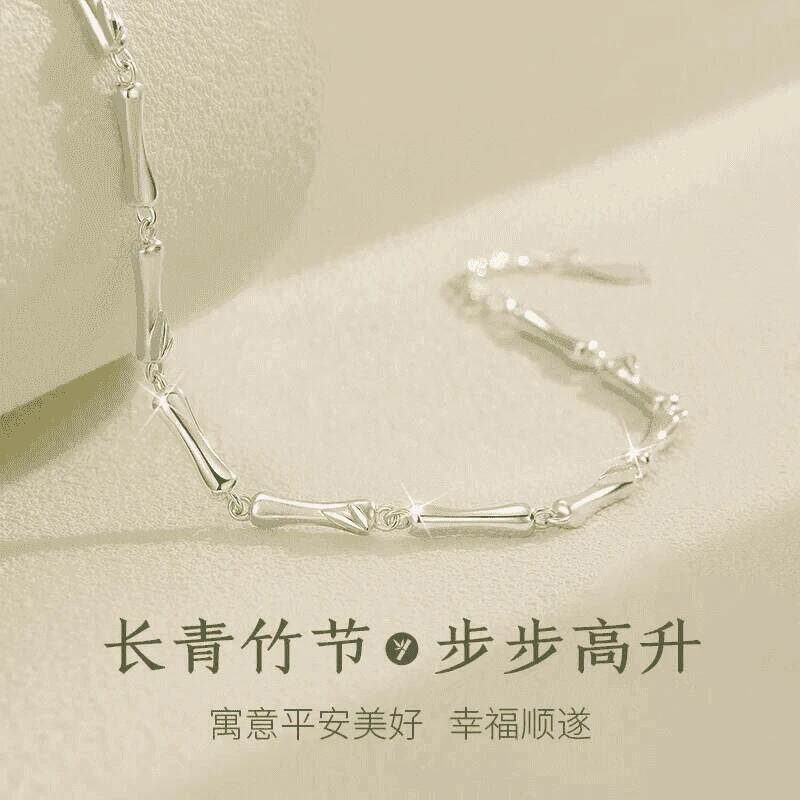 【幂琳】S999女友竹节纯银手m链小众轻奢竹报平安足银手饰高级送
