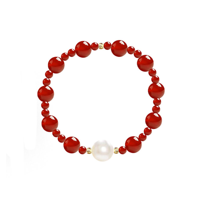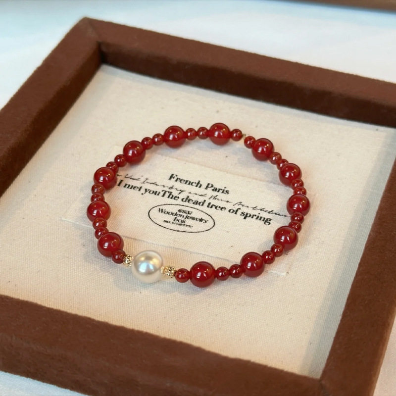 天然红玛瑙S925纯银仿施家珍珠手链复古红色系本命年显白气质手串