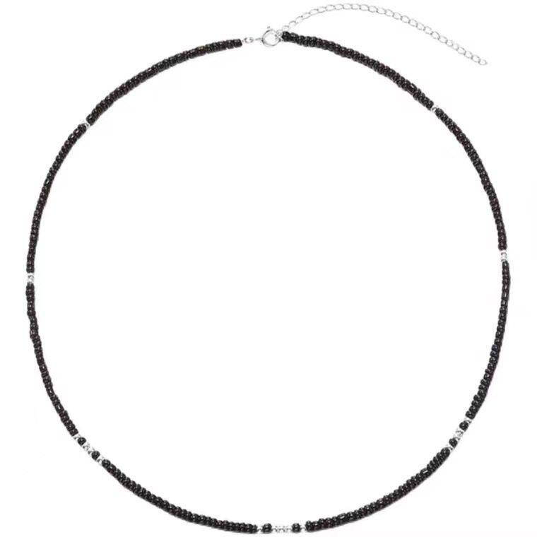 fever同款黑色米珠通体925银项链黑色玛瑙石串珠叠戴锁骨链不掉色