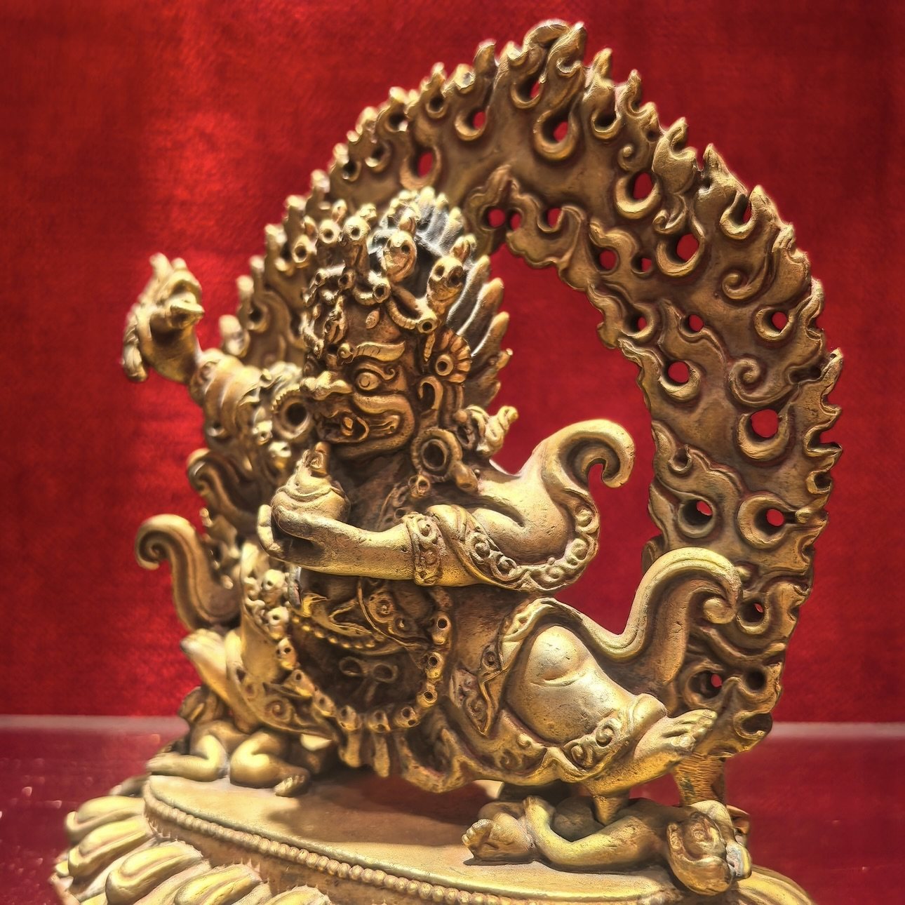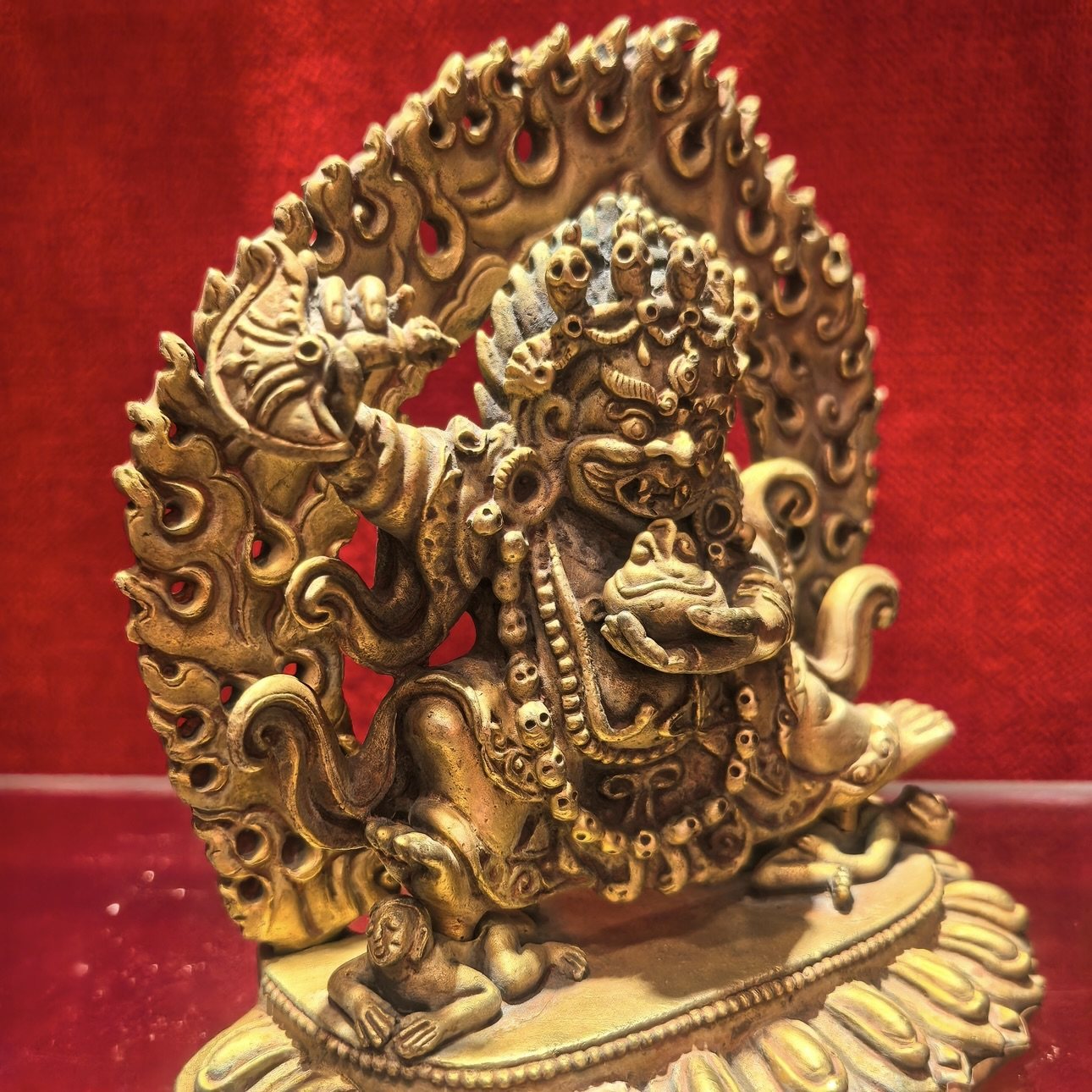 黑袍金刚/玛哈嘎拉/噶举/二臂大黑天臂12cm 尼泊尔鎏金佛堂摆件
