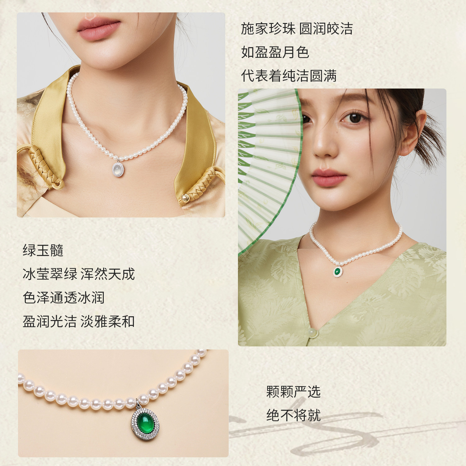 绿玉髓施家珍珠项链女款2026新款爆款配礼服颈链高级感轻奢小众