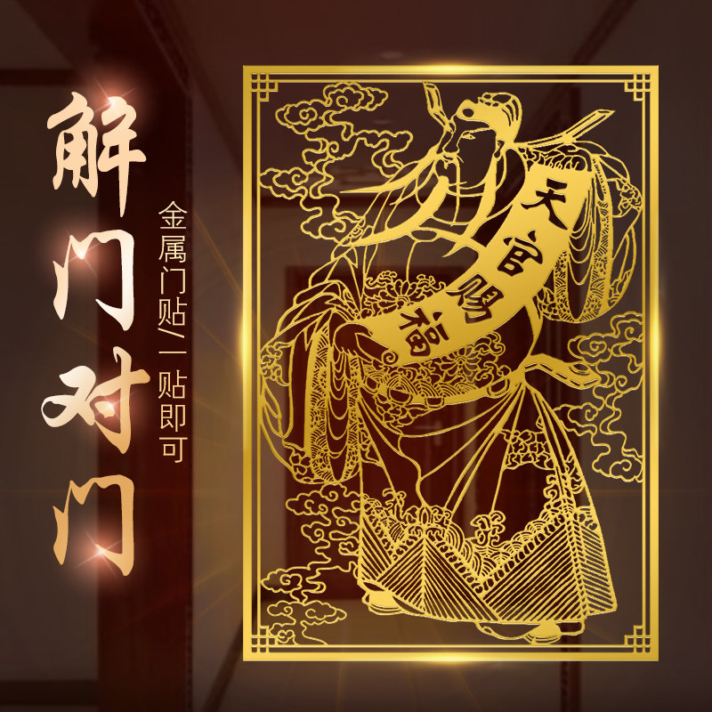 天官赐福门贴牌匾五帝钱门对门吉祥结挂件大门对邻居门隐形金属贴