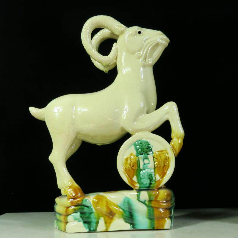 正品陶家瓷山羊羚羊黄色的羊二生肖摆办公件室玄关居装饰工艺品十