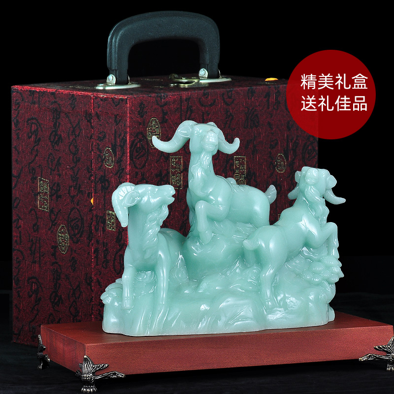 三羊开泰摆件生肖羊玉石三阳开泰招财家居客厅玄关酒柜装饰工艺品