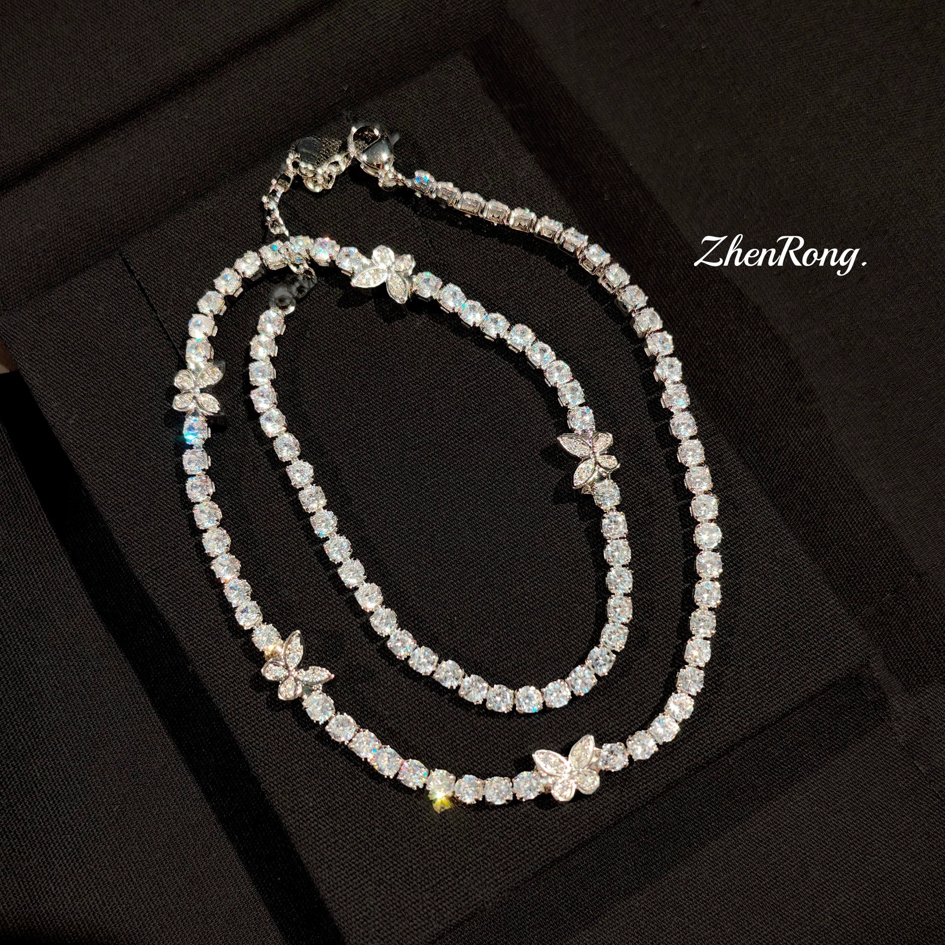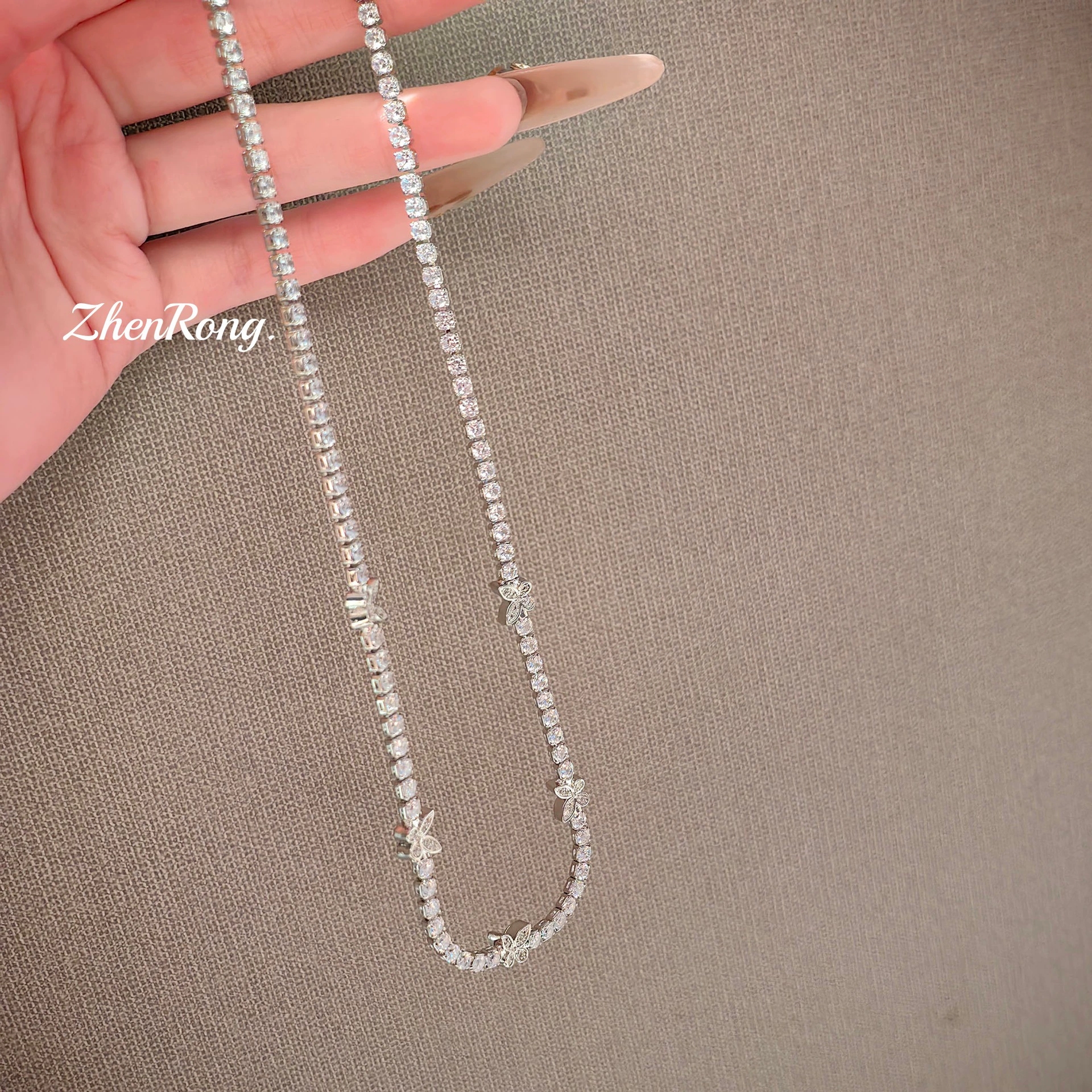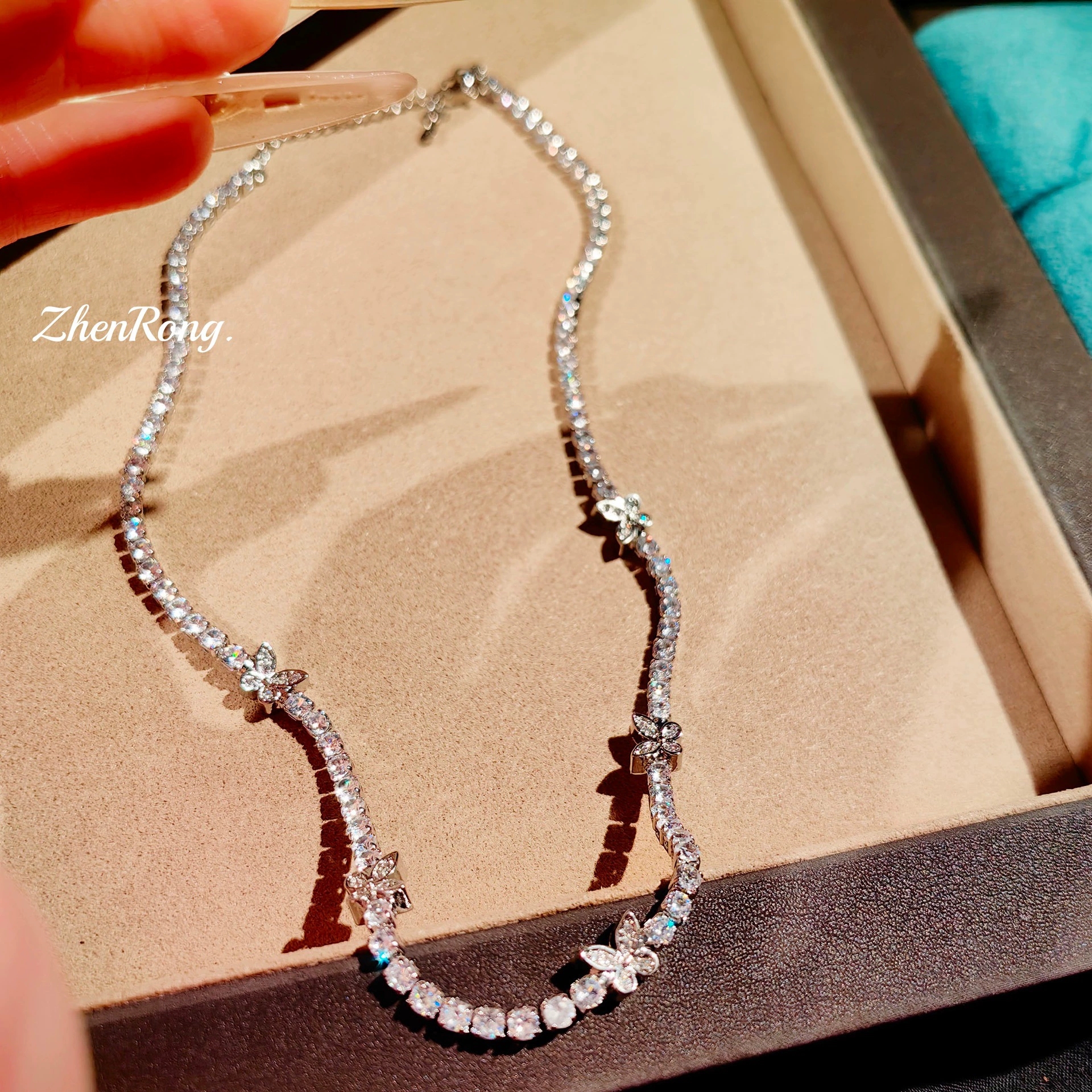 Young气质简约满钻蝴蝶微镶锆石项链女轻奢chocker颈链网红项饰女