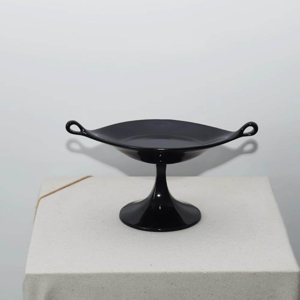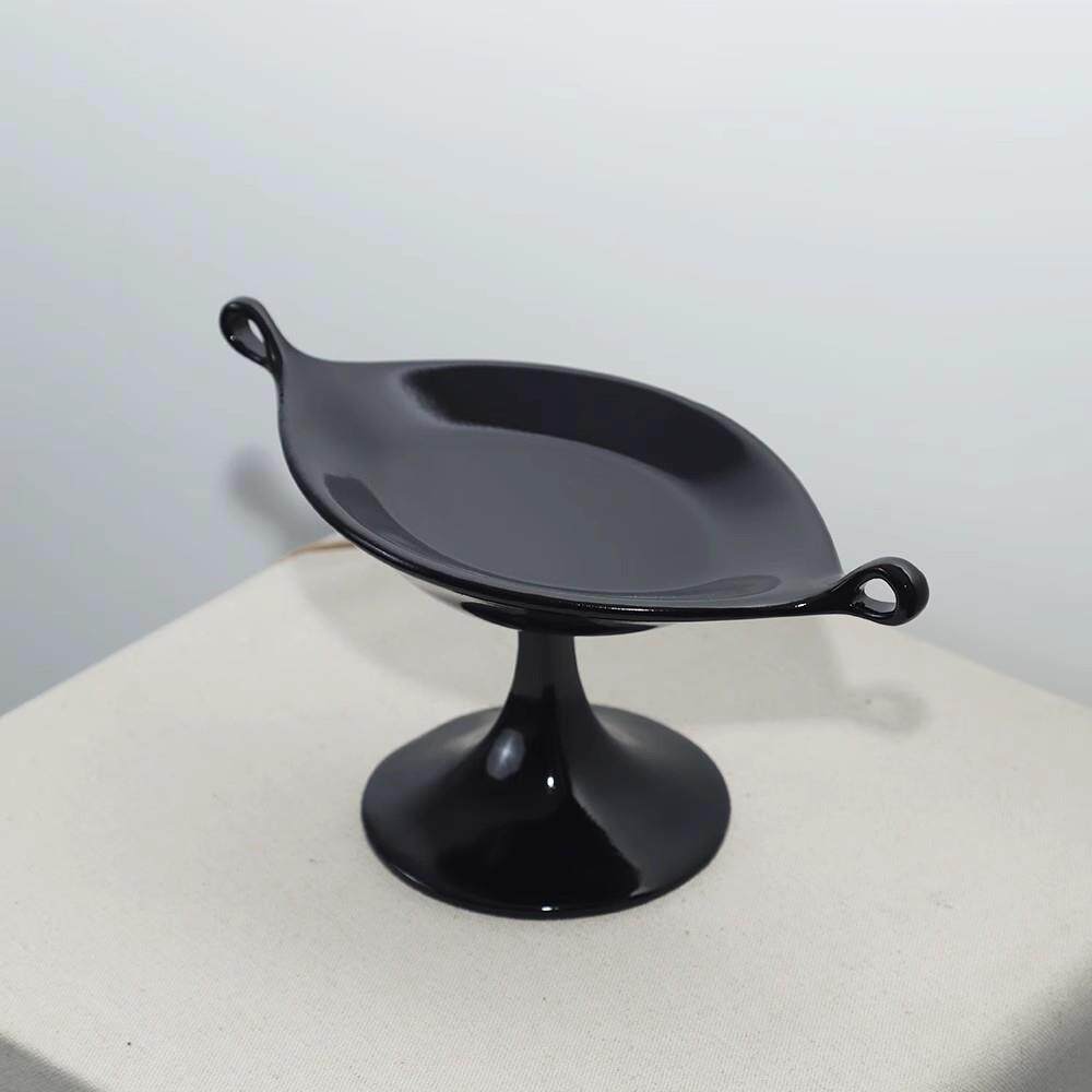 诧寂风中古风黑色双耳树脂盘轻奢高级感客厅茶几桌面摆件样板间