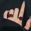 暗黑红宝石开口戒指女ins冷淡风潮酷小众设计感个性镂空金属指环