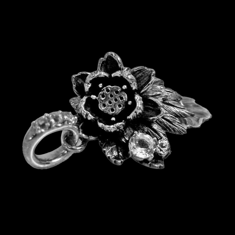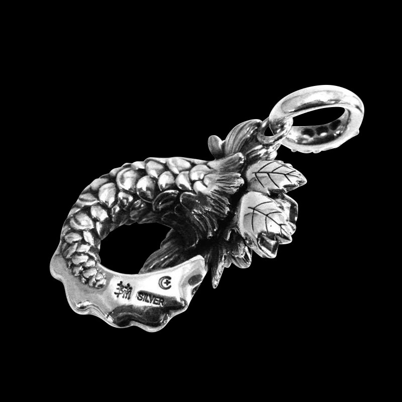 【圣先金】鲢鱼荷叶莲花鱼尾925纯银镶钻吊坠艺术写实手工项链