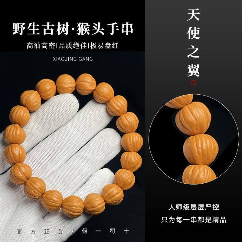 男款盘玩南瓜土豪凤羽桃核老树王野生猴头手串文玩手串男款盘玩