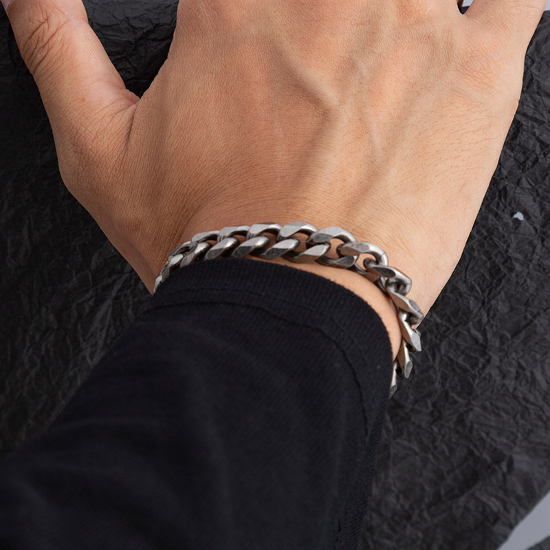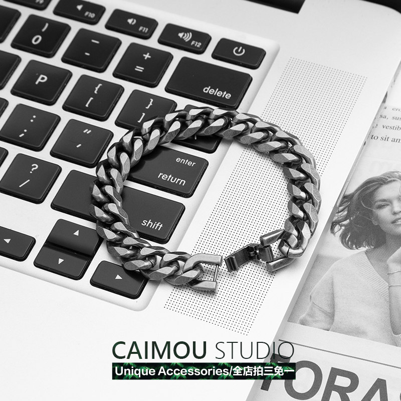 CAIMOU 宽版古巴手链复古钛钢男女潮ins嘻哈小众设计简约冷淡手环