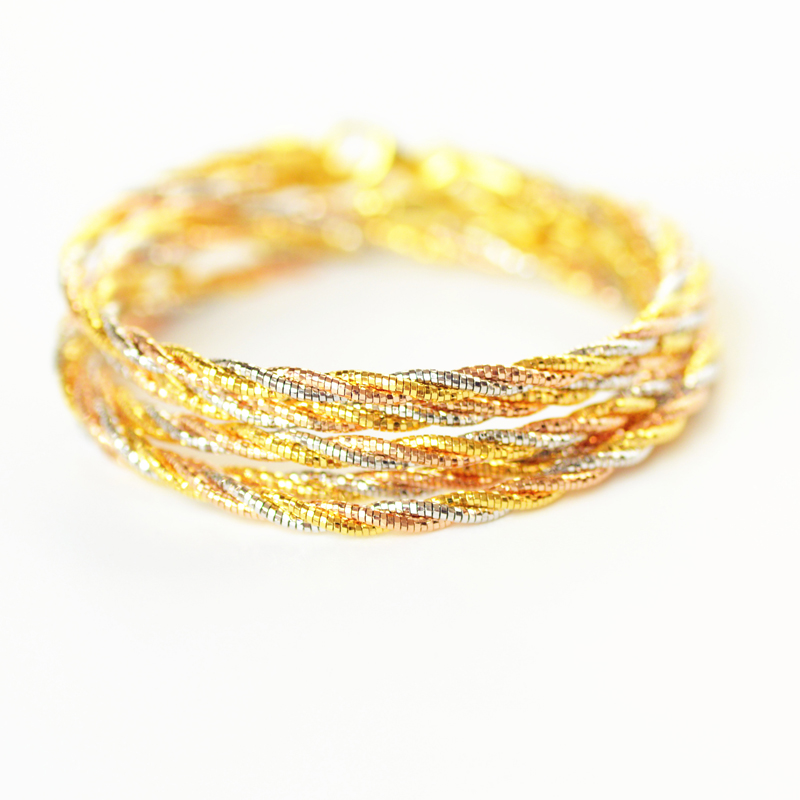 意大利 彩金玫瑰金闪亮三色金925纯银18K镀金包金手链特别闪