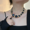 复古国风树脂不规则异形石头项链夸张灰色串珠锁骨链女高级感配饰