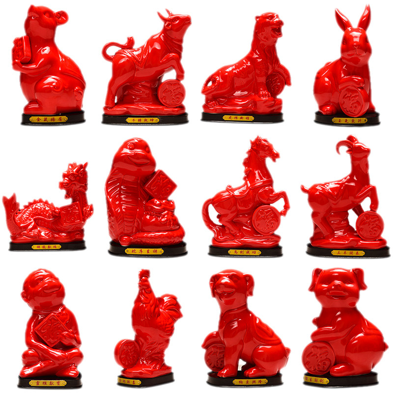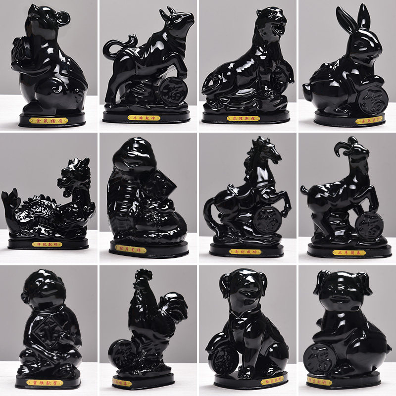 陶瓷十二12生肖摆件红黑色整套鼠牛虎兔龙蛇马羊猴鸡狗猪招财饰品