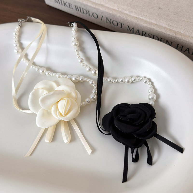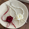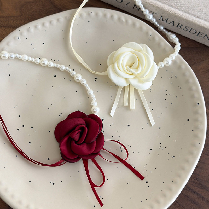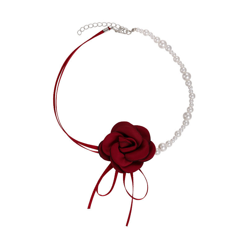 纯欲风山茶花朵珍珠项链女choker锁骨链轻奢小众红色花朵颈链配饰