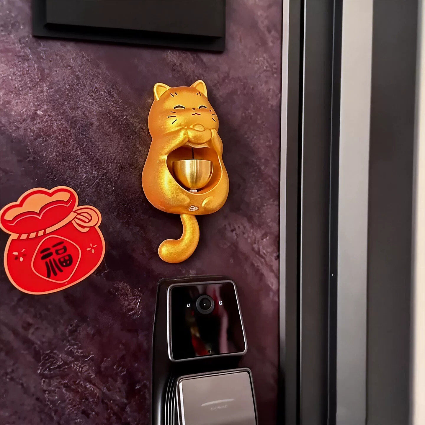 招财猫磁吸门铃智能门锁装饰摆件开门提醒铃铛新年礼物门挂装饰品
