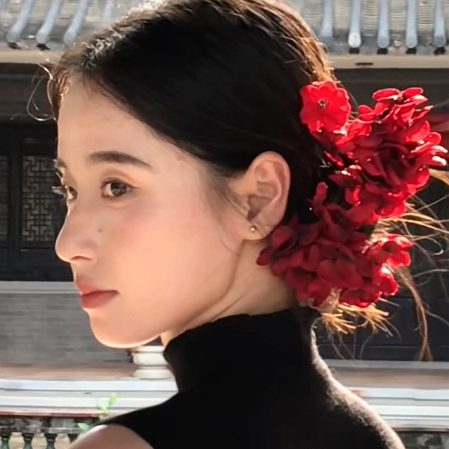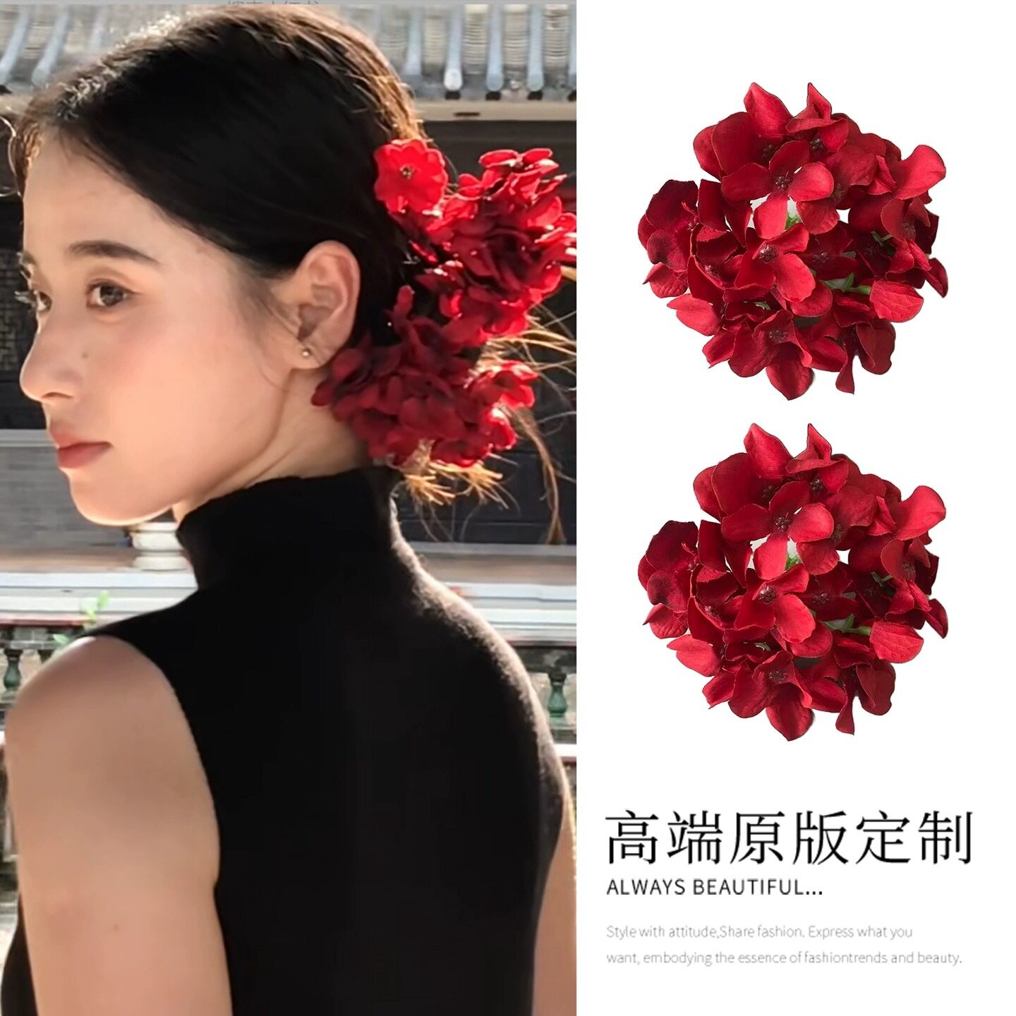 Willa|新中式国风红色新娘绣球花发夹喜庆盘发侧边夹氛围感发饰