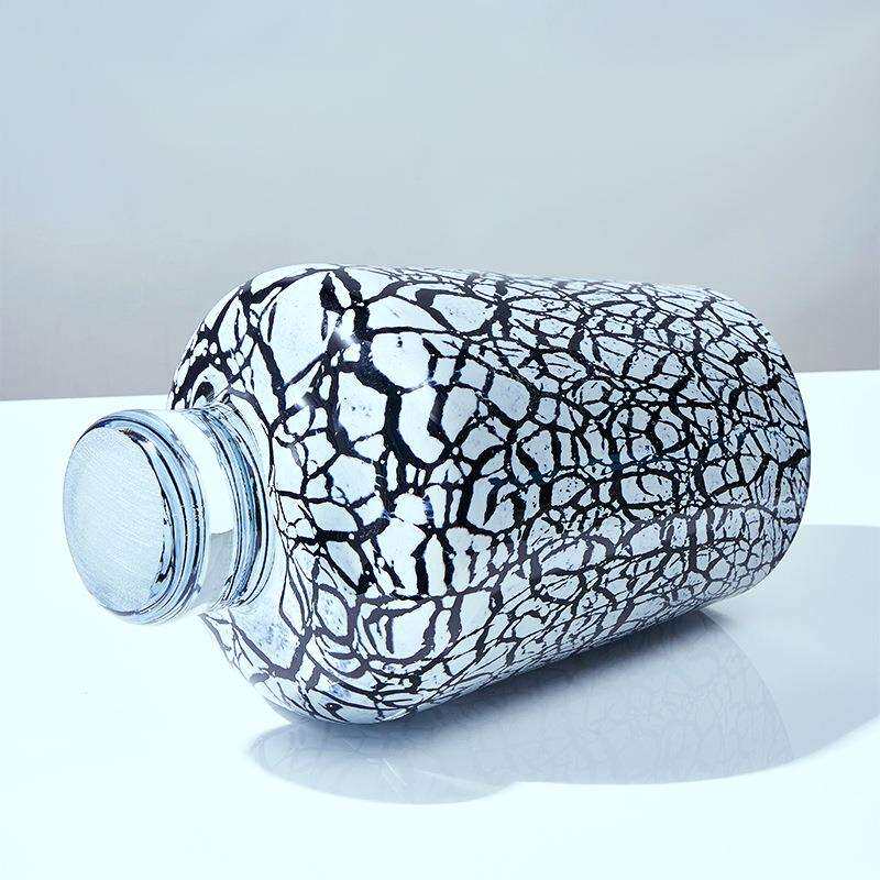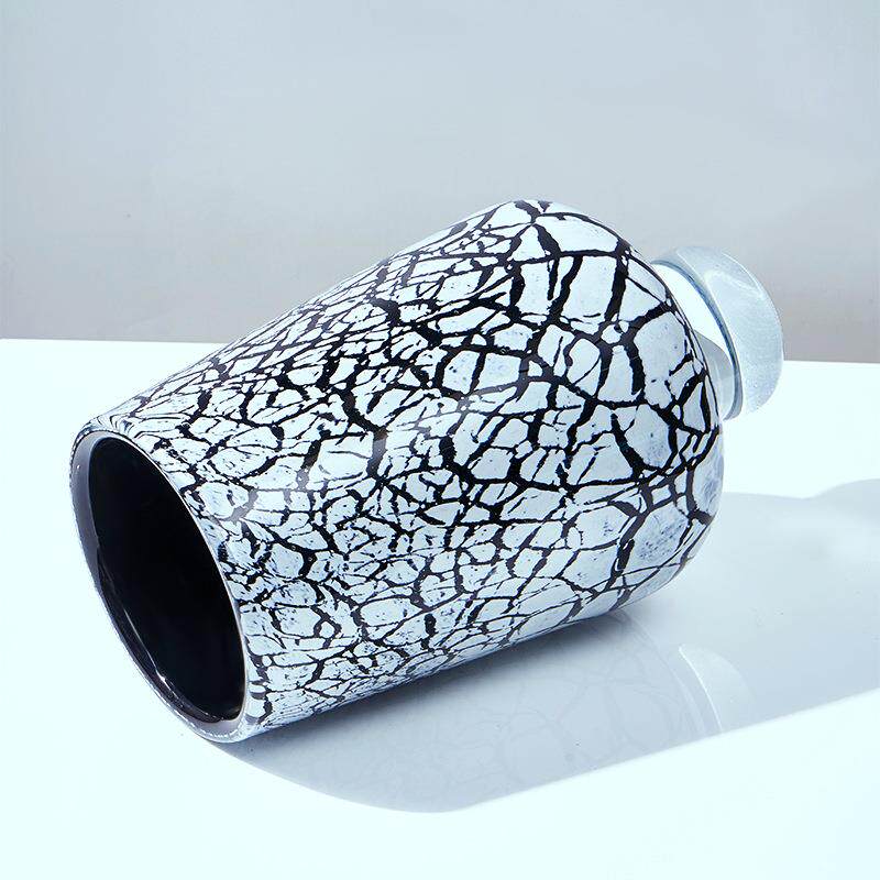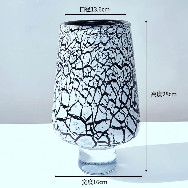 轻奢现代创意高脚冰裂纹内黑色琉璃花瓶家居客厅玄关桌面装饰摆件