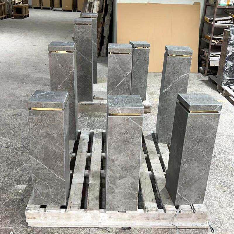 哑光灰色岩板摆件底座入户玄关装饰楼梯转角过道落地石材柱子摆台