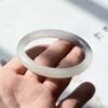 天然和田玉手镯白色烟紫色双色玉镯子女款礼物冰底烟灰色玉石镯子