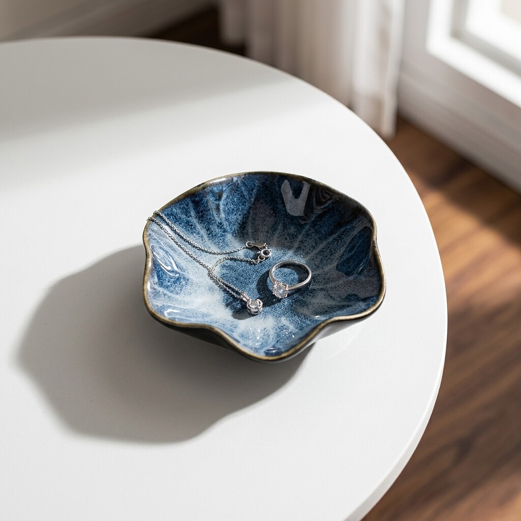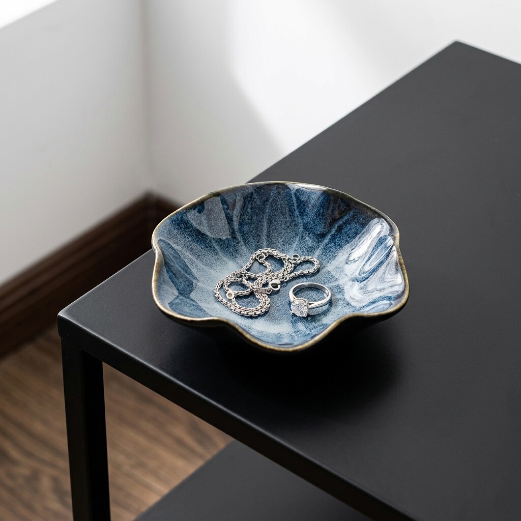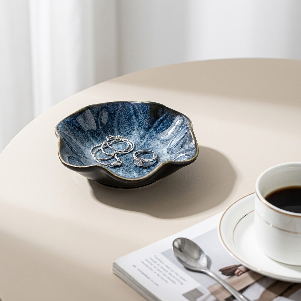 高级感陶瓷花朵造型收纳盘家居装饰摆件蓝色渐变工艺品