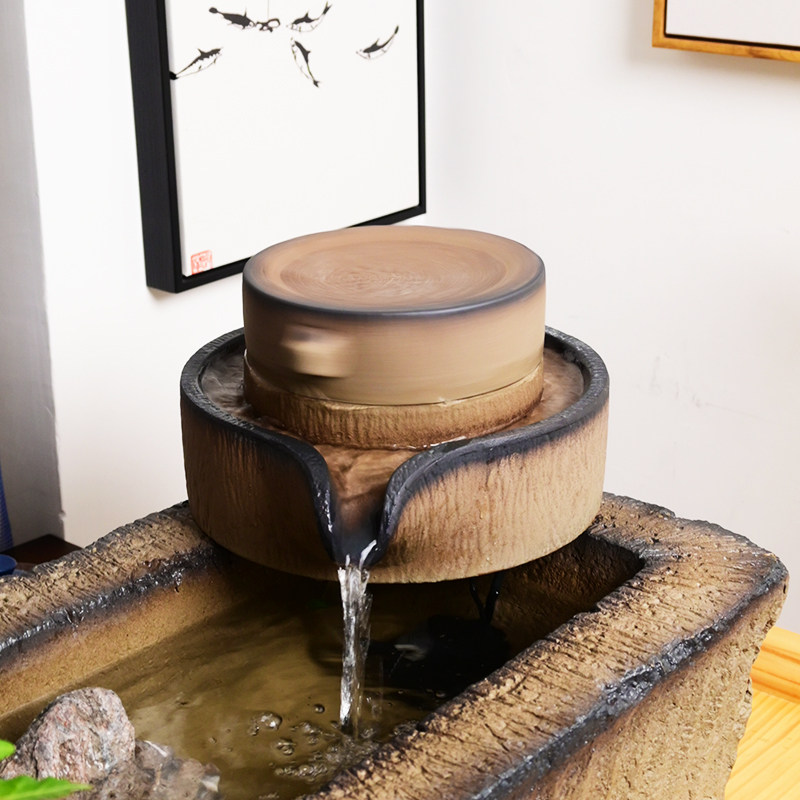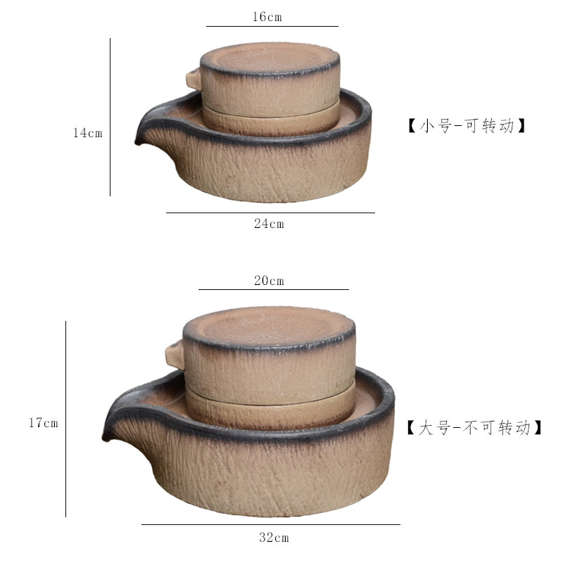 招财时来运转石磨流水摆件陶瓷水磨鱼缸石槽搭配磨盘庭院装饰水景