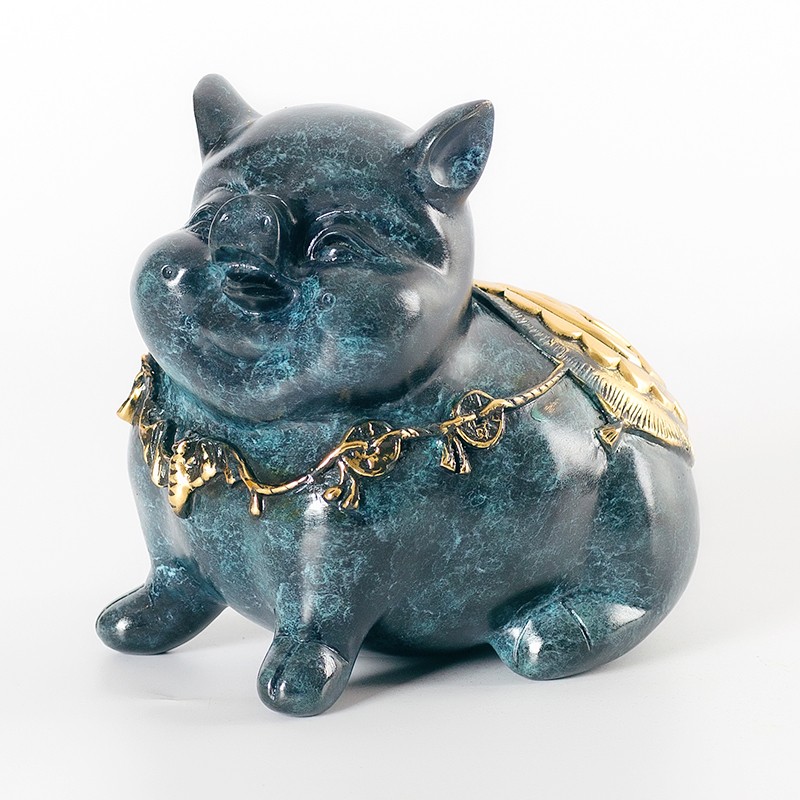 铜制金猪摆件十二生肖新中式家居玄关客厅办公室桌面装饰创意可爱