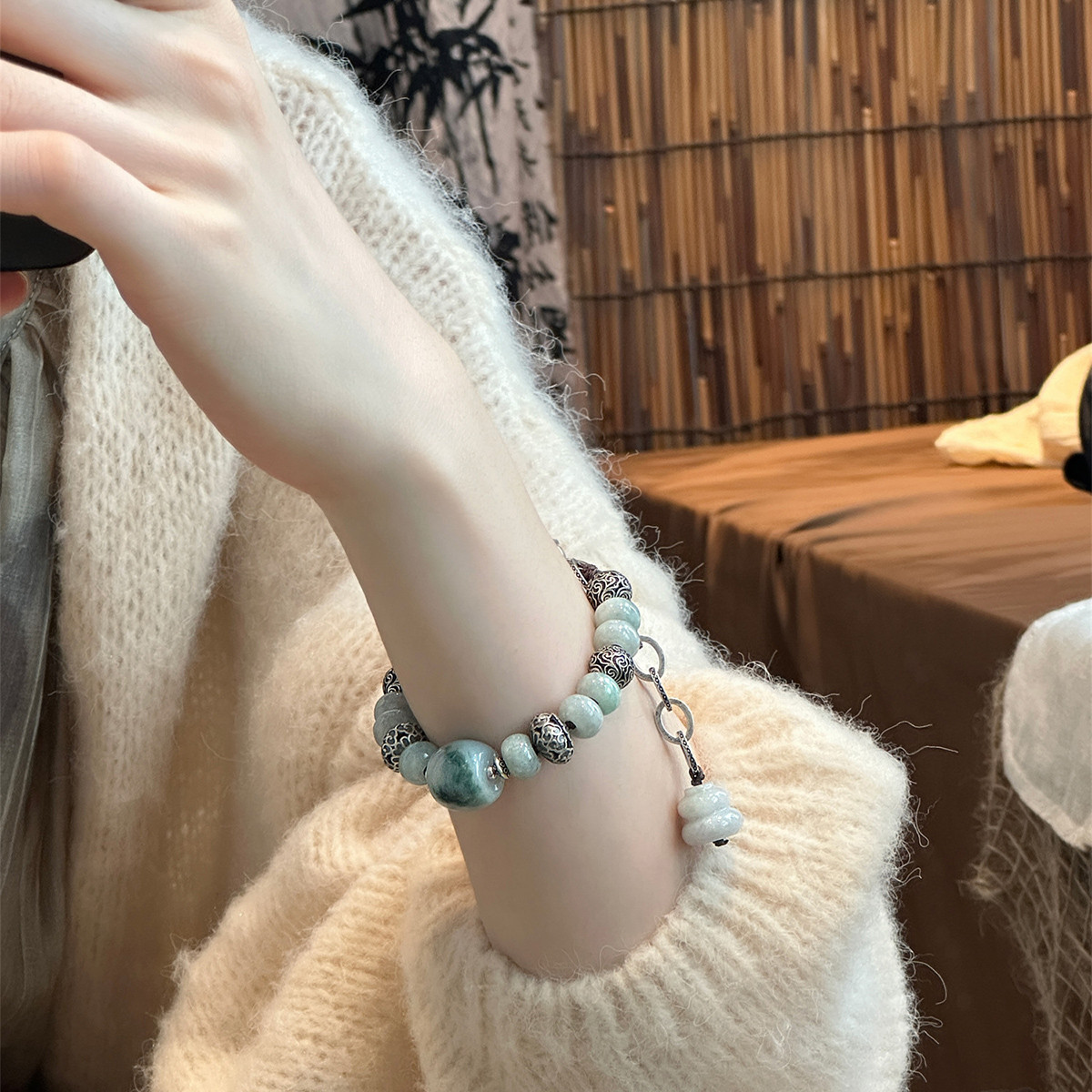 925银翡翠A货珠珠葫芦手链女复古国风新中式祥云珠轻奢手环手串