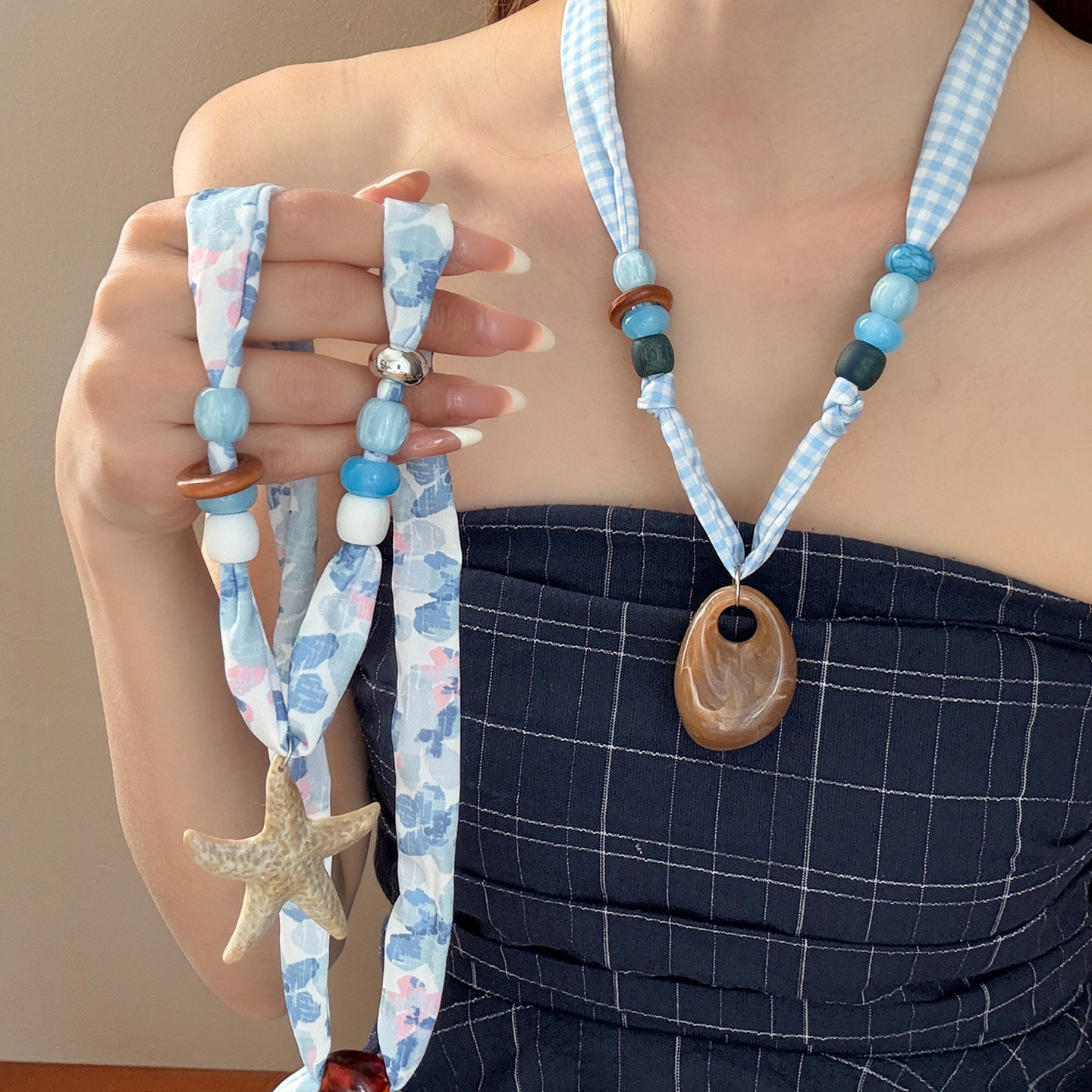 度假风海边蓝色海星串珠丝巾项链女高级感配饰个性韩系长款锁骨链