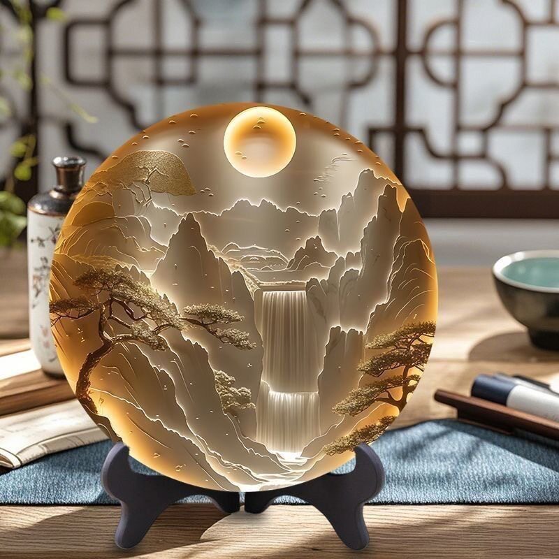 古风立体圆盘摆件书桌茶室办公室摆件精致台面创意摆件