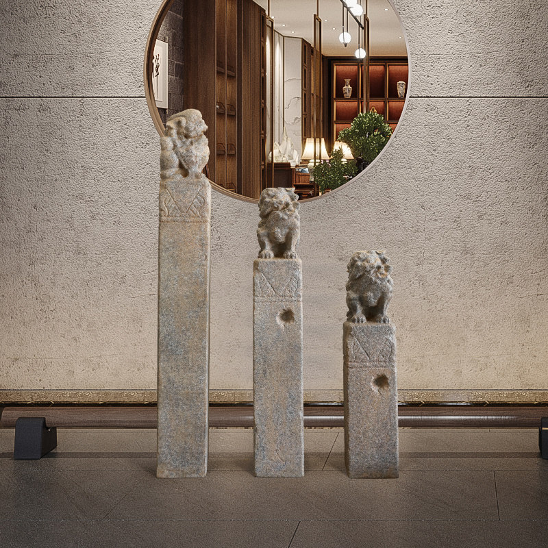 中式庭院仿古拴马桩狮子花园造景布置栓马柱落地摆件室内玄关装饰
