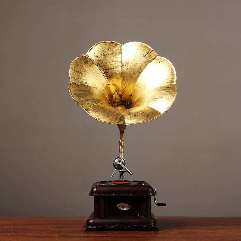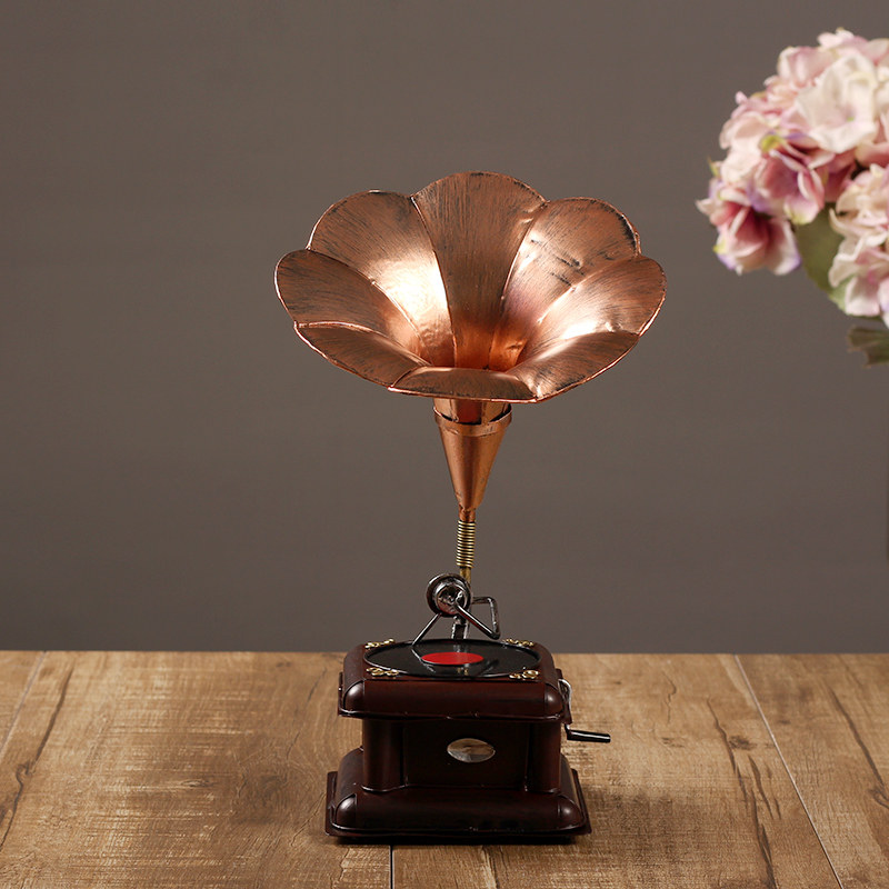 欧式铁艺留声机模型复古酒吧摆设客厅样板房别墅餐厅装饰品摆件