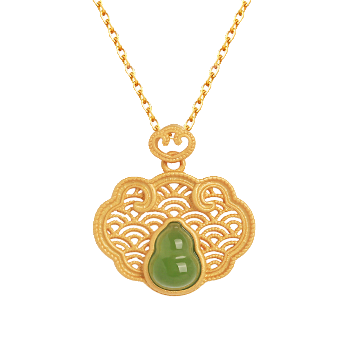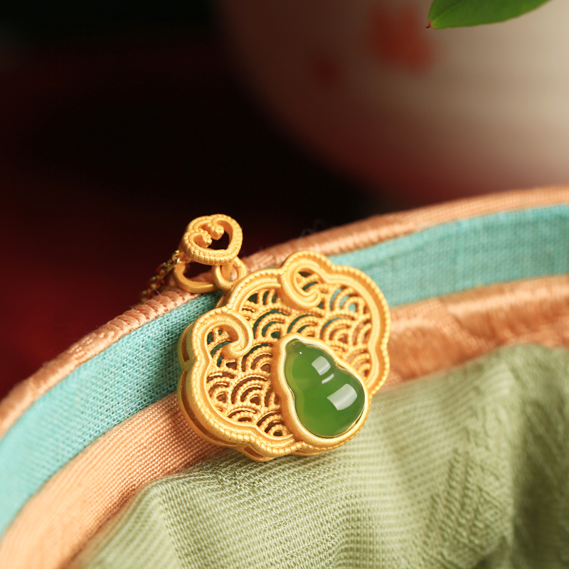 和田玉碧玉祥云葫芦如意纯银吊坠女中式国风长命锁金镶玉项链玉石