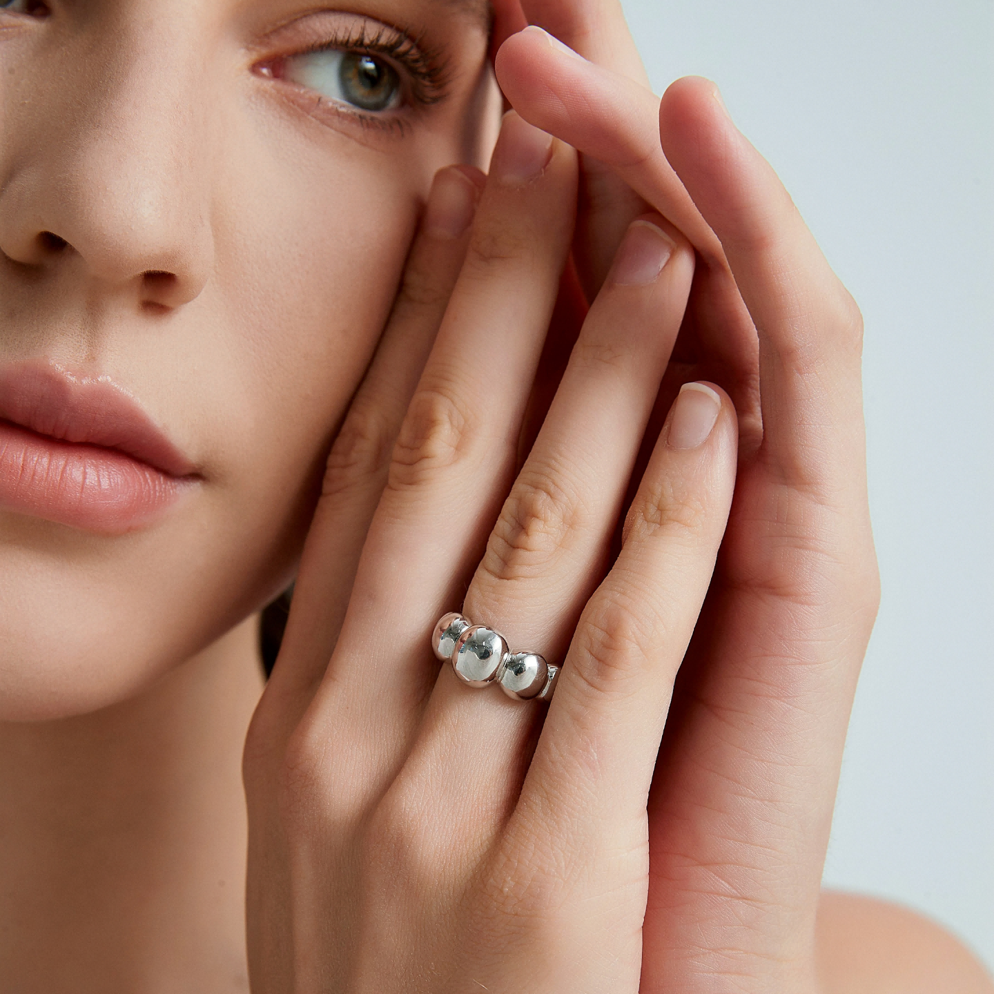 TENCOO金属云朵Puff戒指女 s925银高级极简冷淡风设计感ins风小众