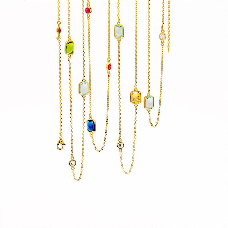 彩钻宝石ins加长版项链叠戴神器甜酷y2k彩锆锁骨链女长款吊坠胸链