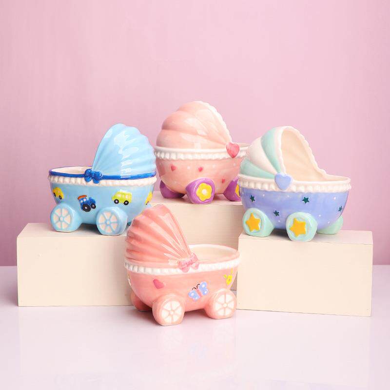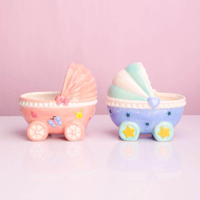 盆大号创意陶瓷儿车摆件可爱首饰仓鼠金IOJ丝熊收纳盒花礼装饰婴