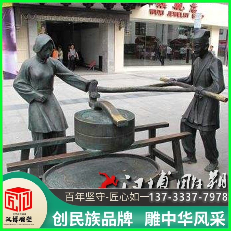商业步行街玻璃钢仿铜磨面人物雕塑景观园林铜雕农民雕塑可定制做