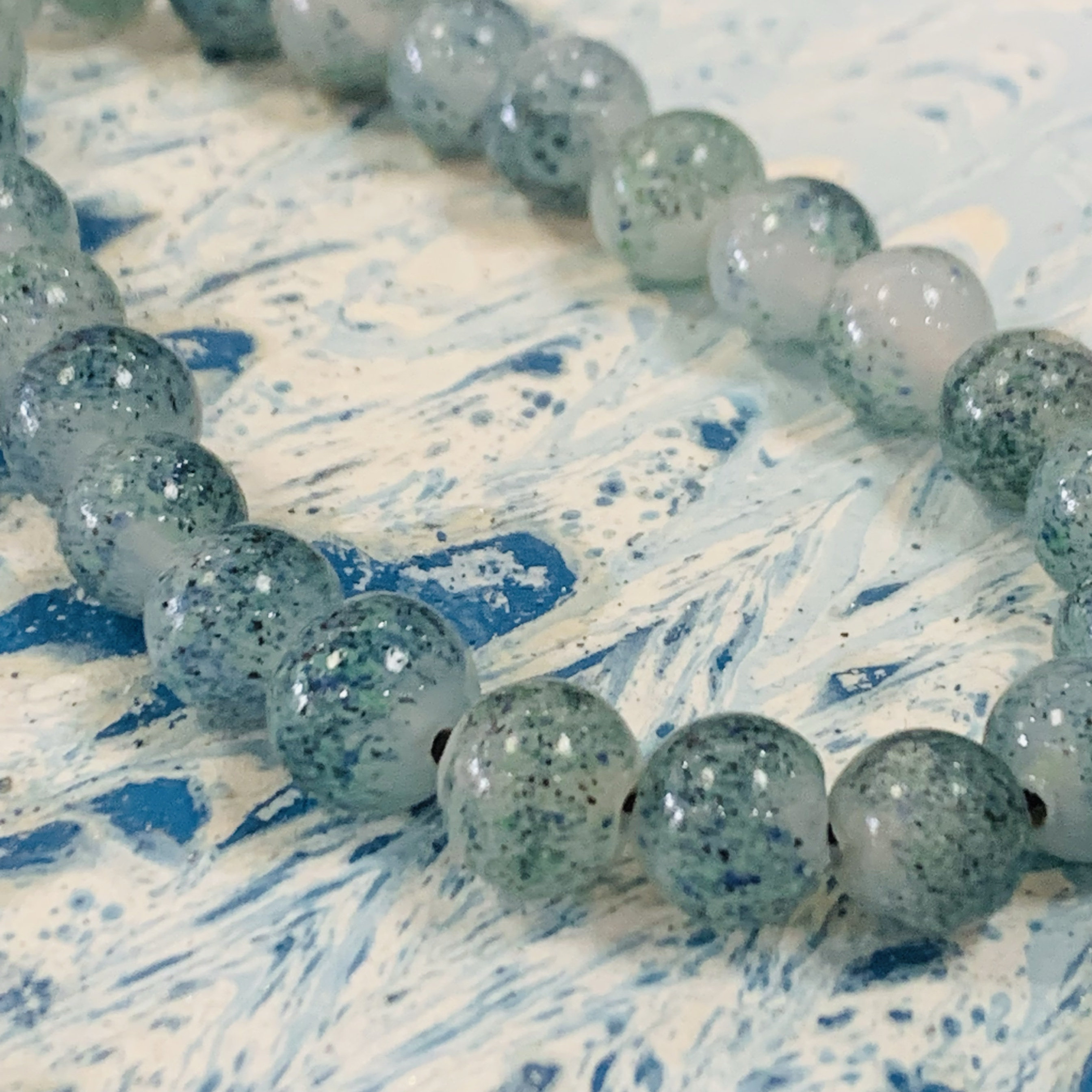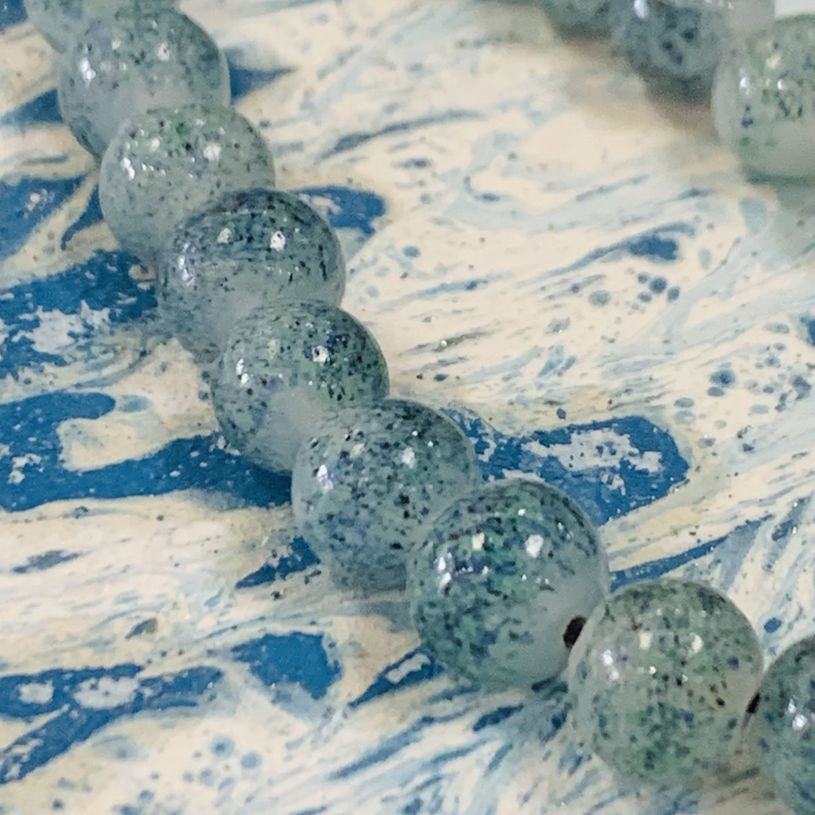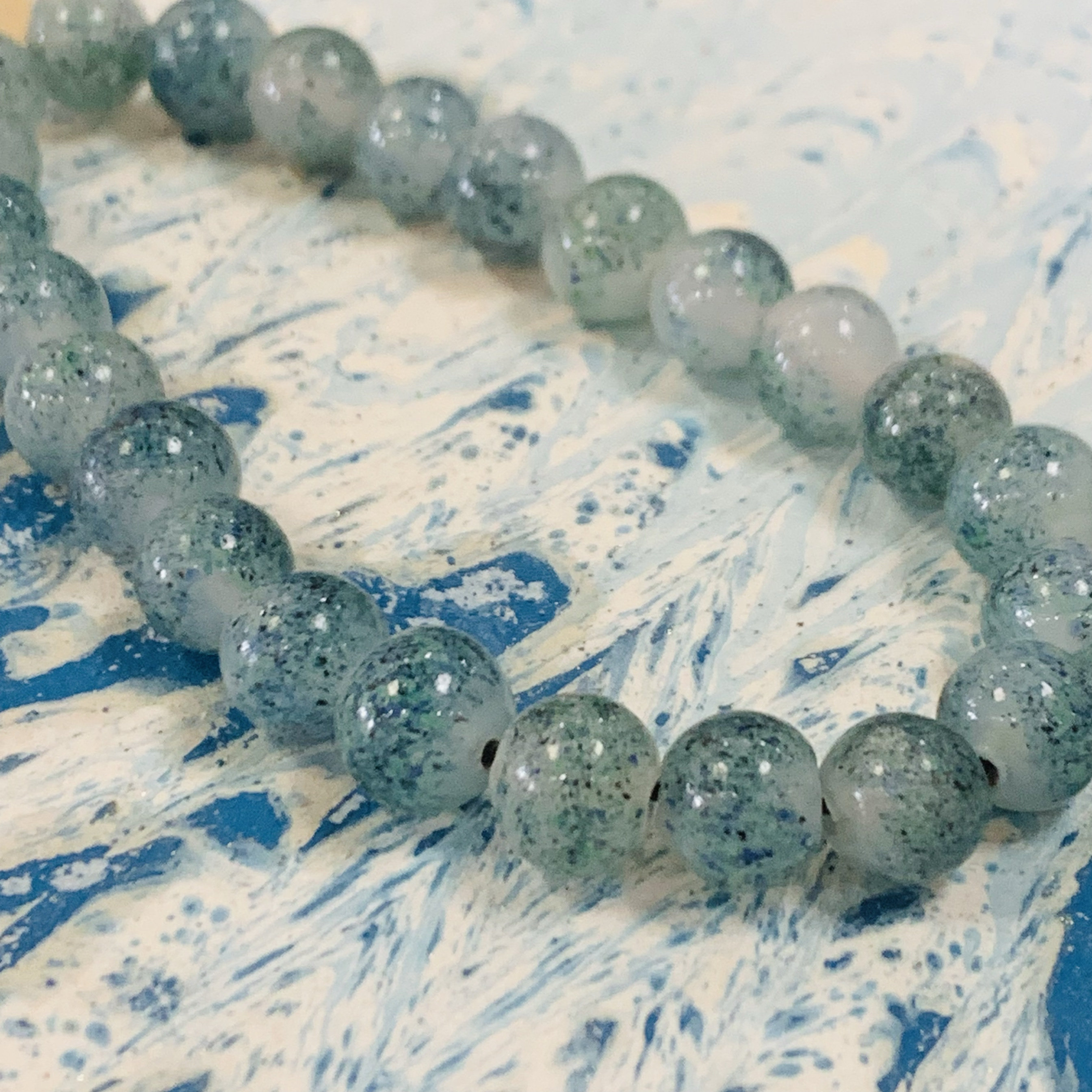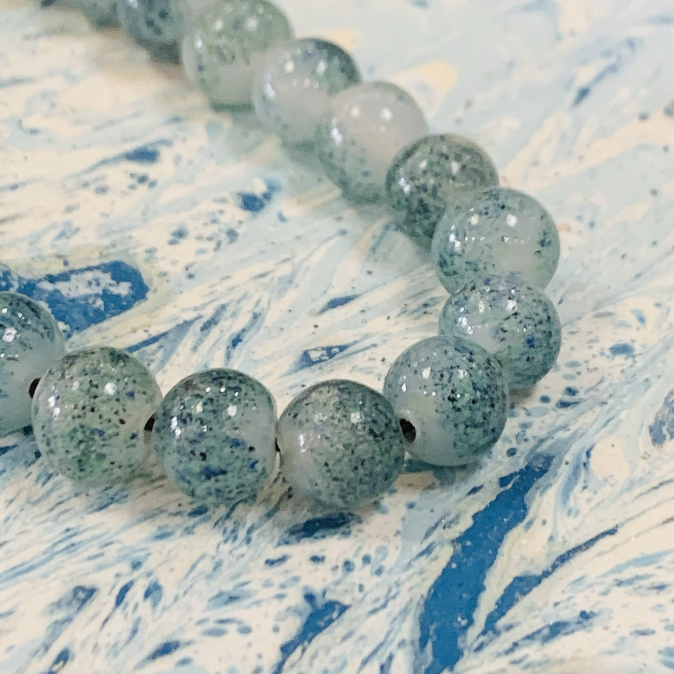 淄博博山10mm绿色沾彩老琉璃散珠手串文玩饰品