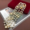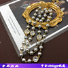 宫廷风镀真金切面玻璃坠项链毛衣链灰色琉璃珍珠长款短款项链