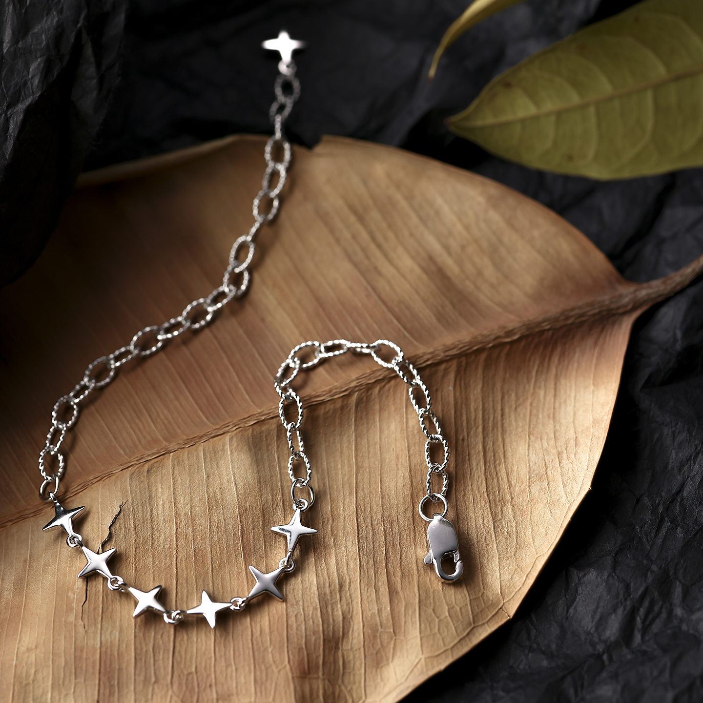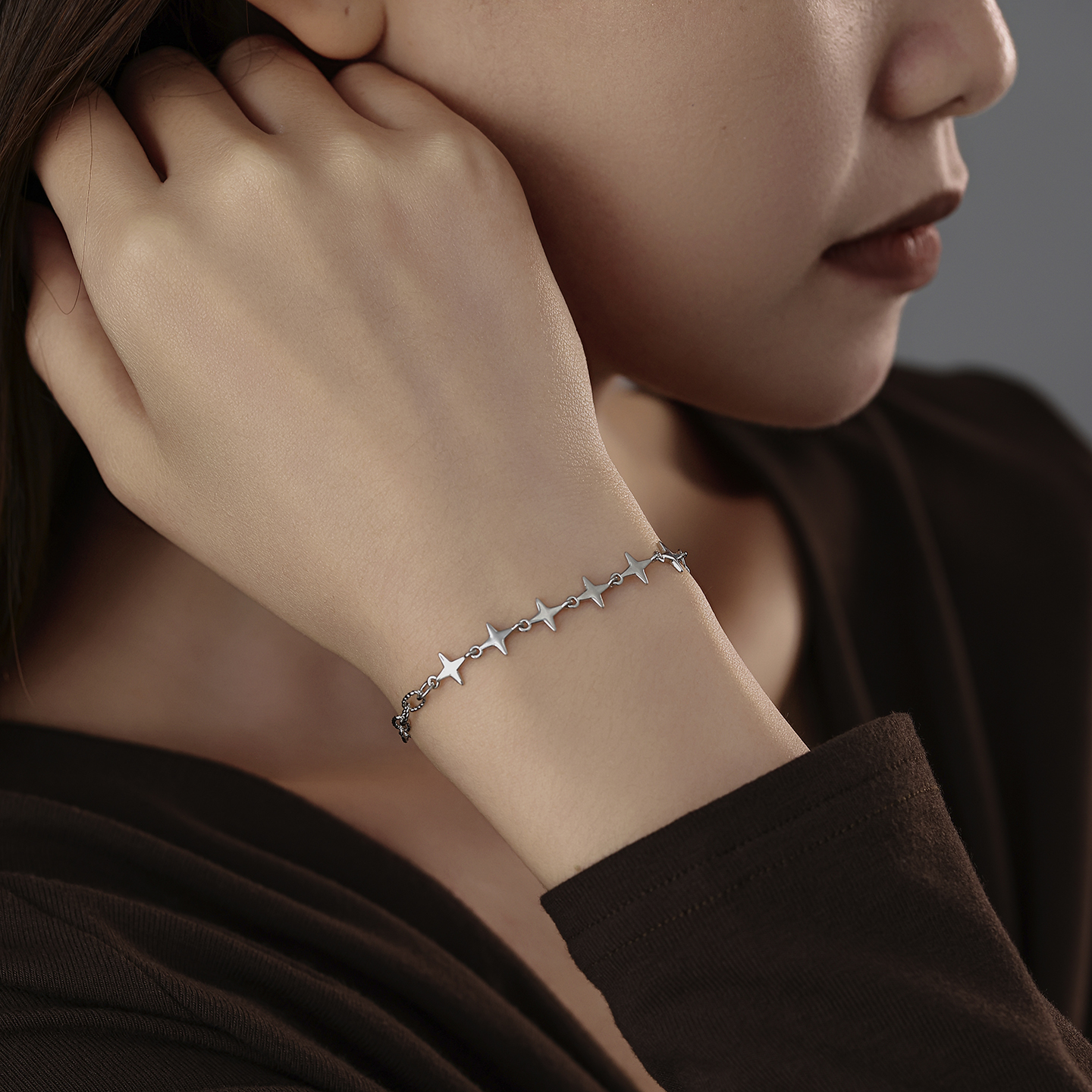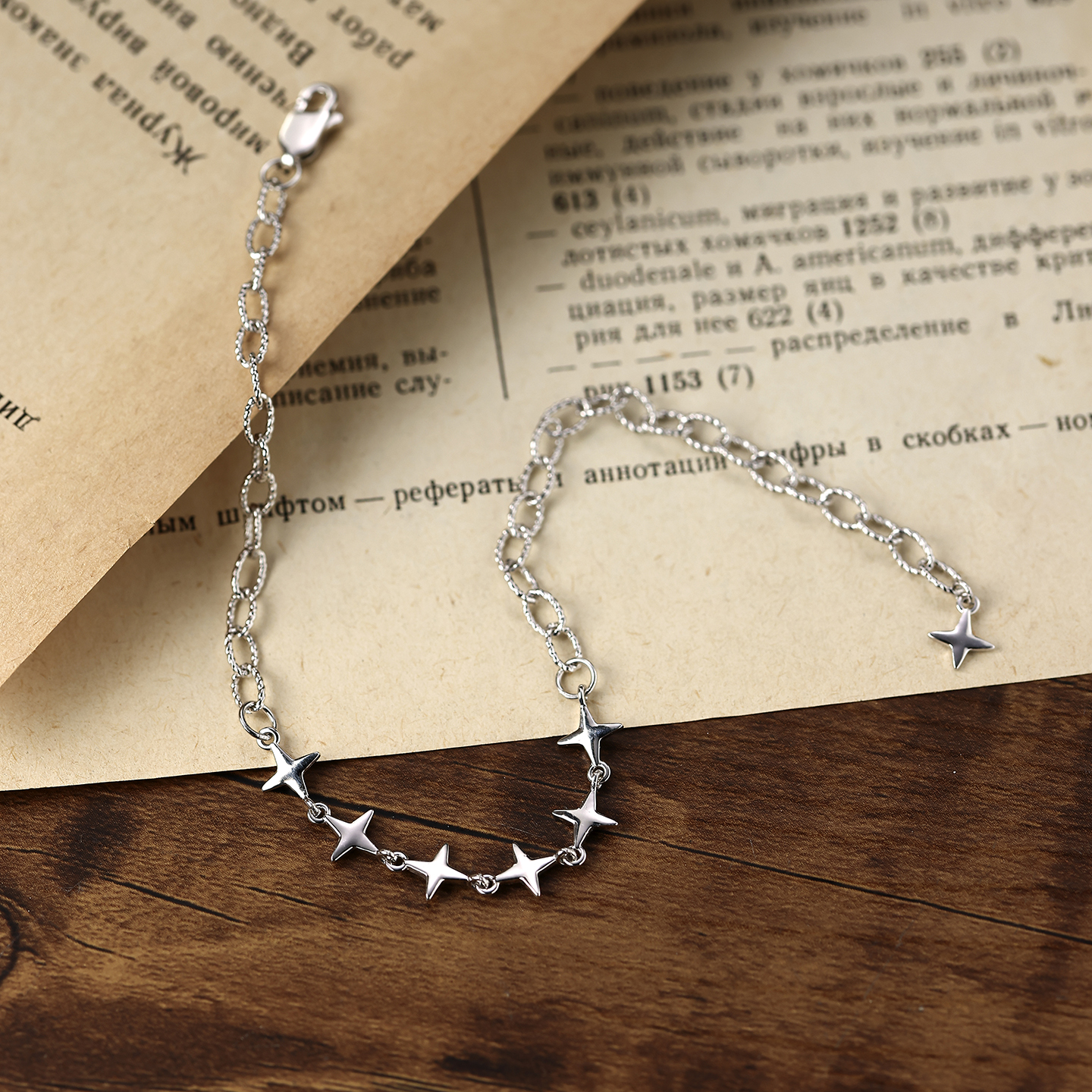 《拾星予你》艺术生日常佩戴通勤百搭星星图案S925银男女情侣手链