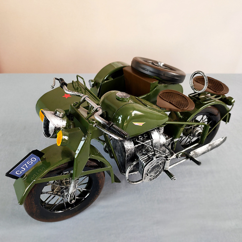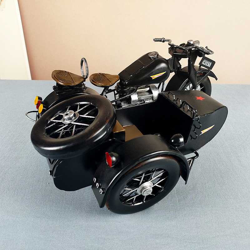 铁艺复古长江750偏三轮摩托车模型装饰桌面摆件手工挎斗摄影道具