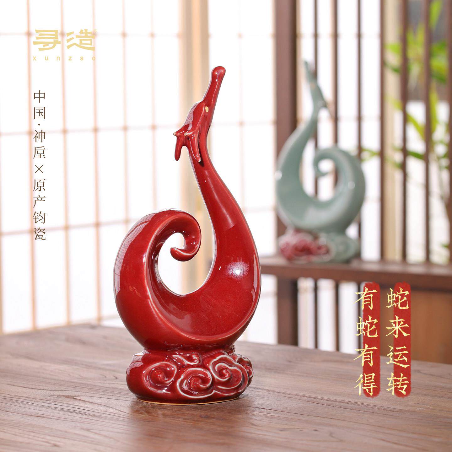 钧瓷生肖蛇年摆件吉祥物高档办公家居饰品非遗手工创意本命年礼物