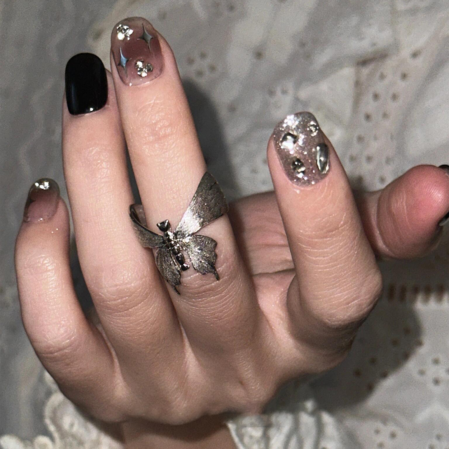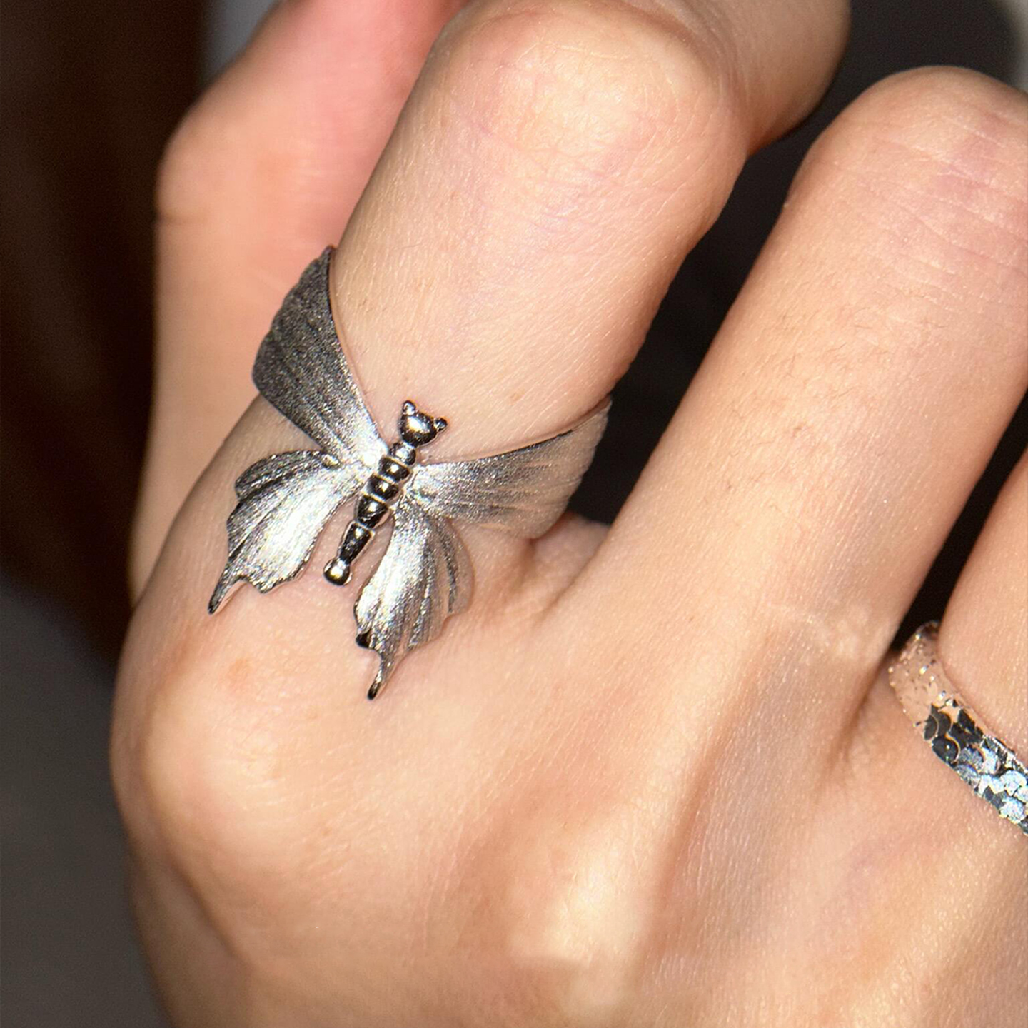 银色拉丝蝴蝶戒指女2025新款爆款轻奢高级感开口食指戒小众设计感