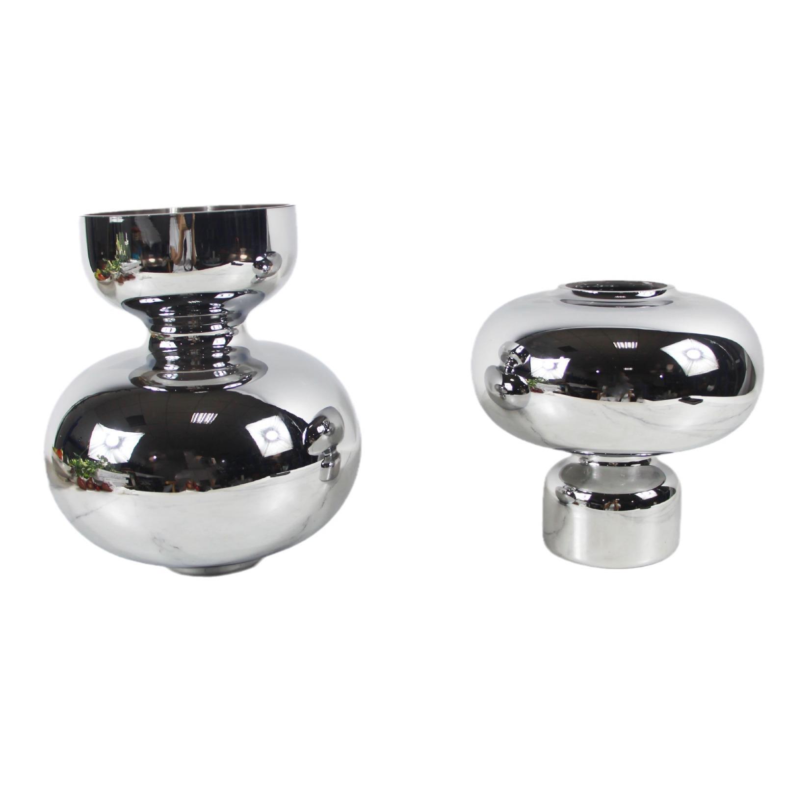 现代简约电镀银色彩色蓝色玻璃花瓶样板间售楼处餐桌花器玄关摆件