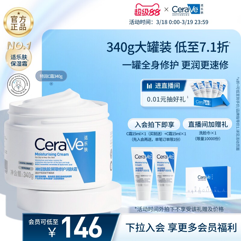 CeraVe适乐肤C霜保湿修护面霜身体乳液男女张凌赫同款官方正品