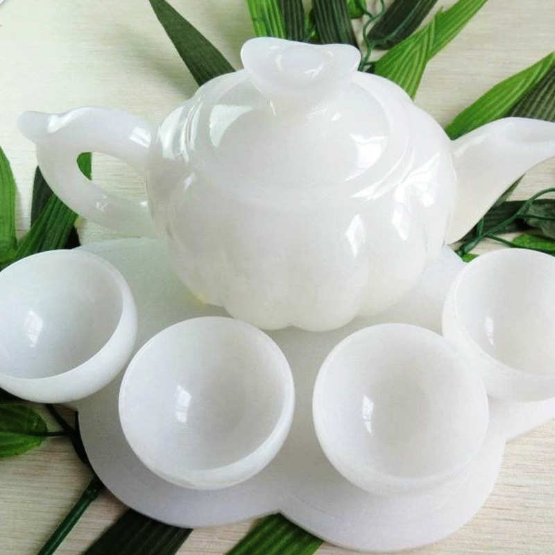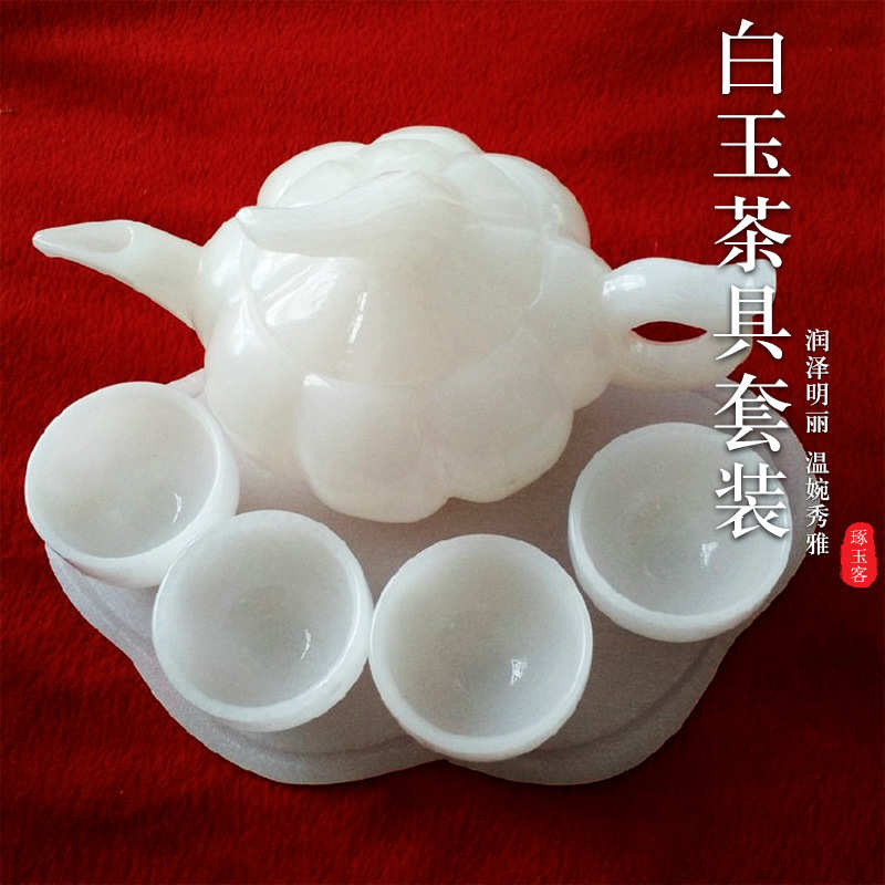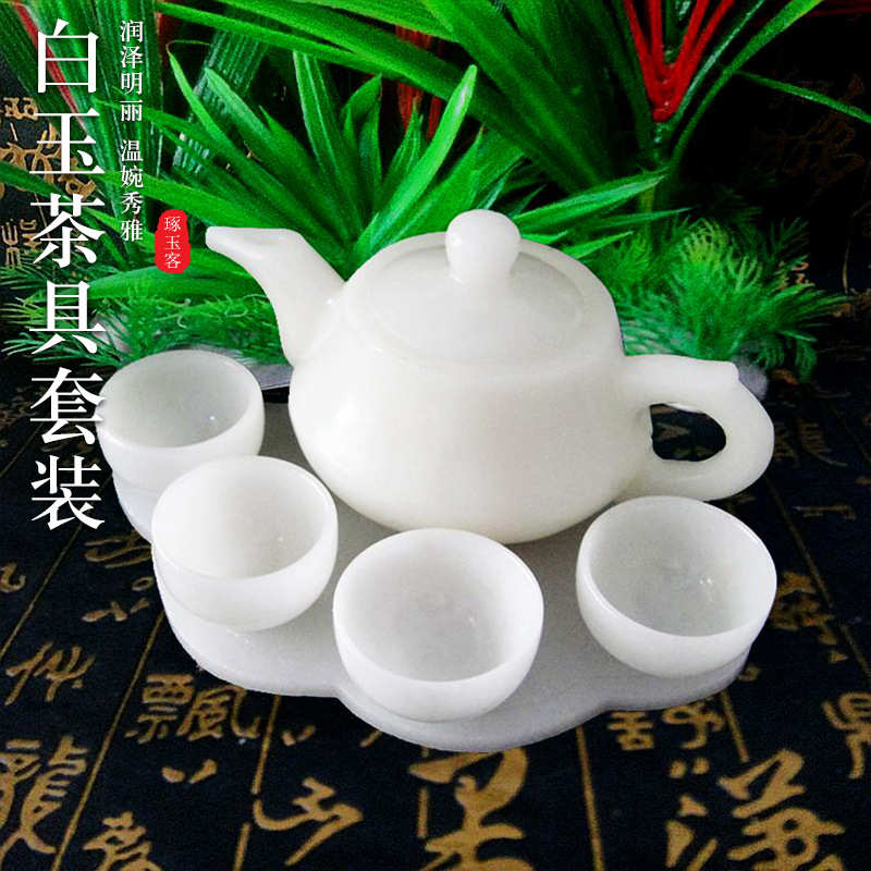 送礼品盒玉石白玉茶具套装 玉质温润 白玉酒壶茶壶茶具