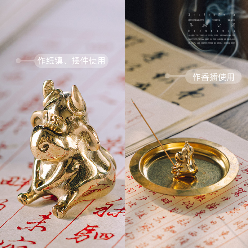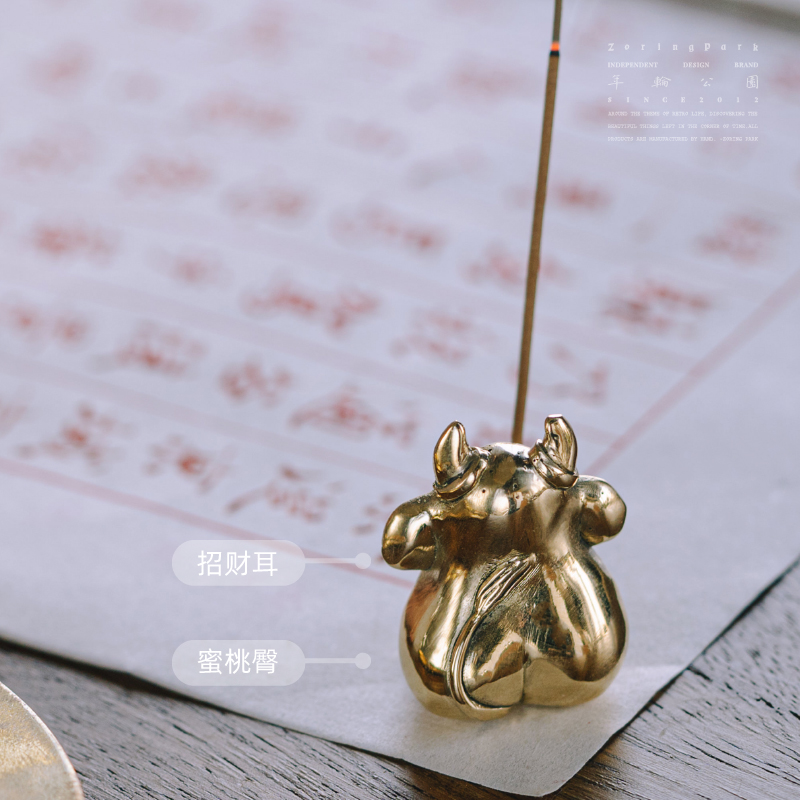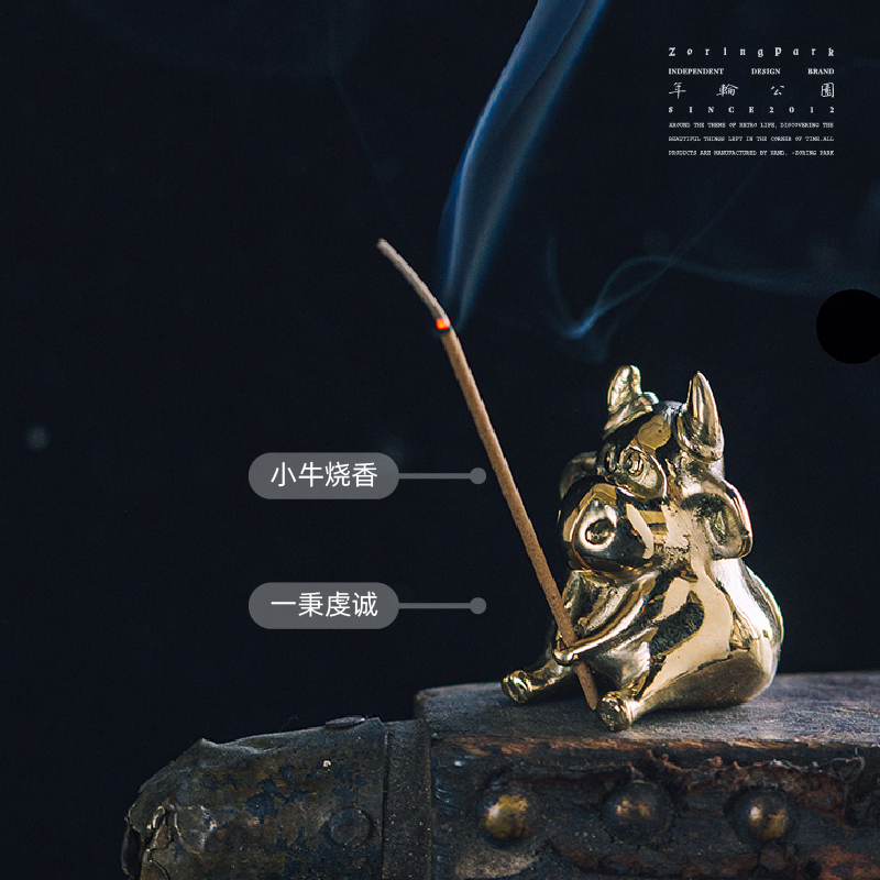 年轮公园 ZORING PARK 黄铜生肖小牛烧香 复古香插 创意摆件 礼盒