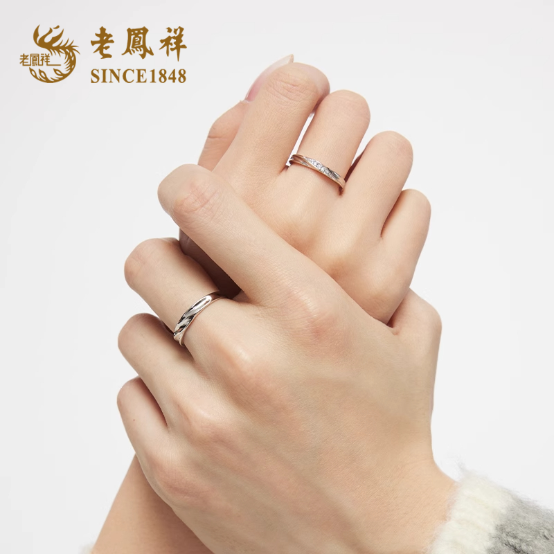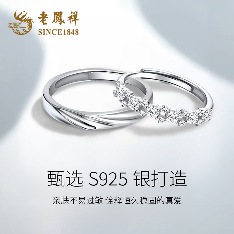 老凤祥s925银情侣戒指男女款小众足银一对戒纯银生日礼物送女朋友